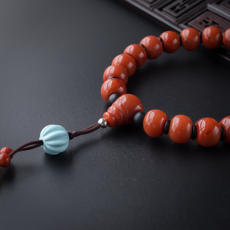 • 9.5mm川料天然柿子红南红手串-红掌柜