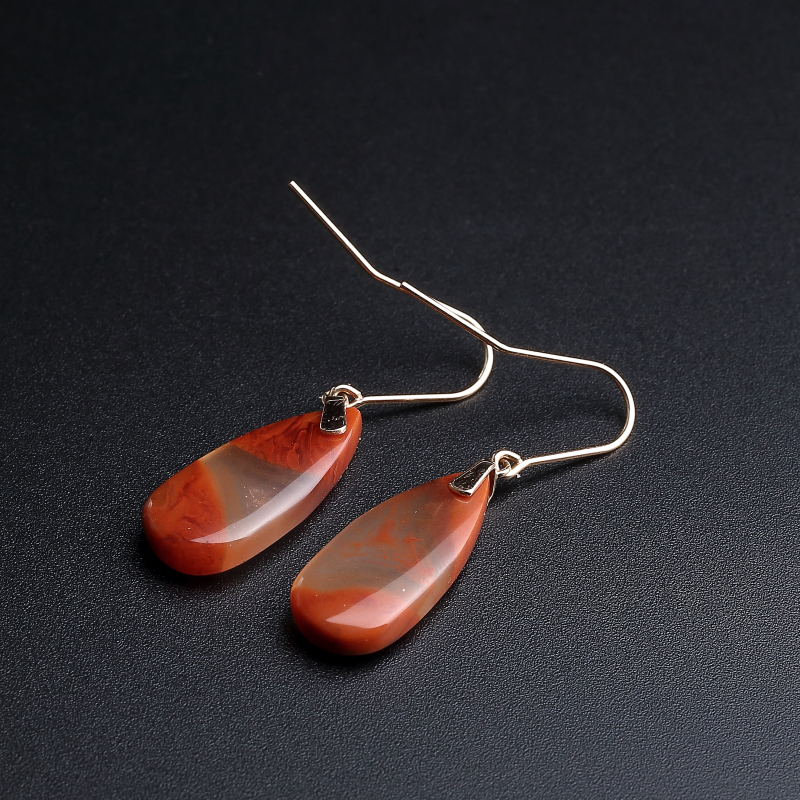 • K金镶川料冰飘南红耳坠 - 红掌柜