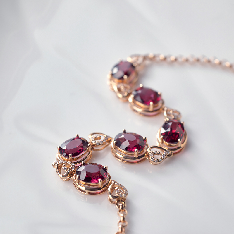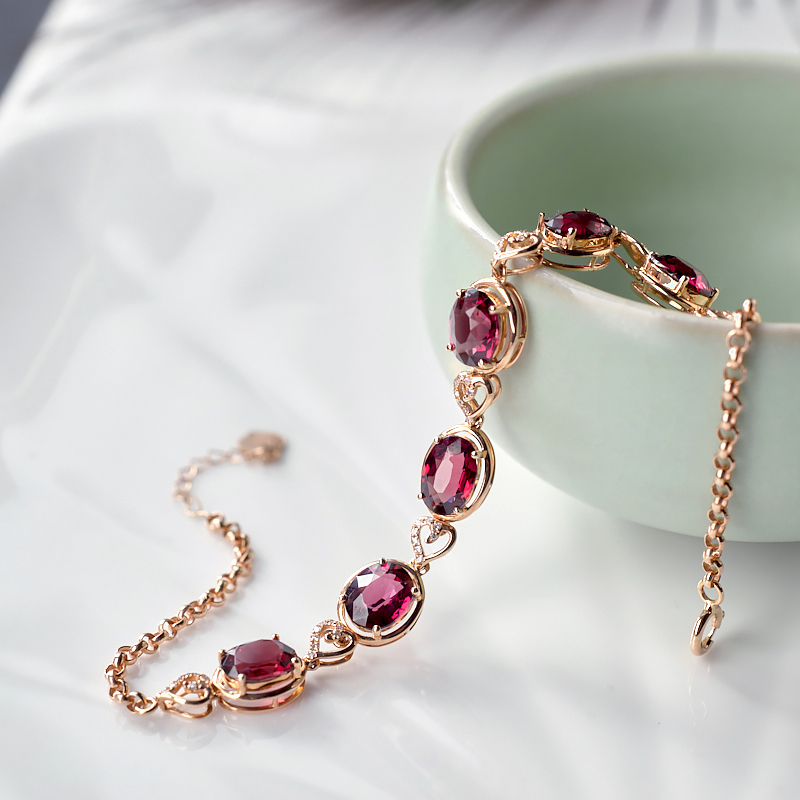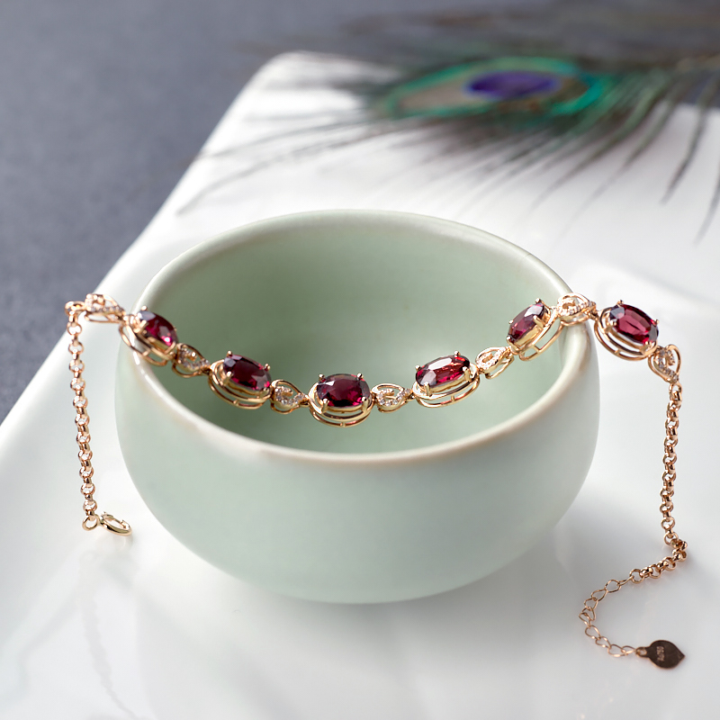 • 18K酒红石榴石手链