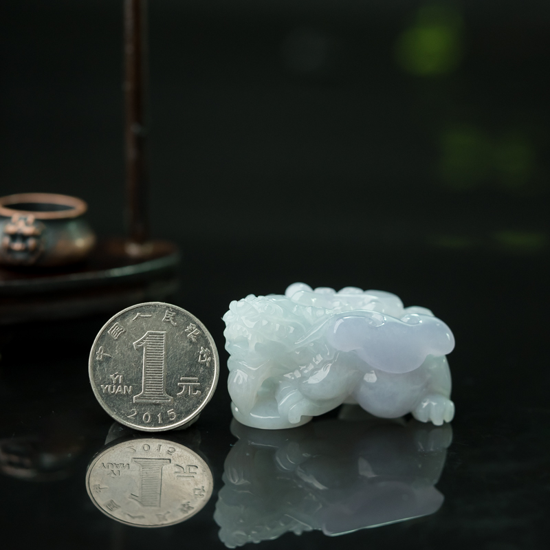 • 糯种春带彩翡翠貔貅吊坠
