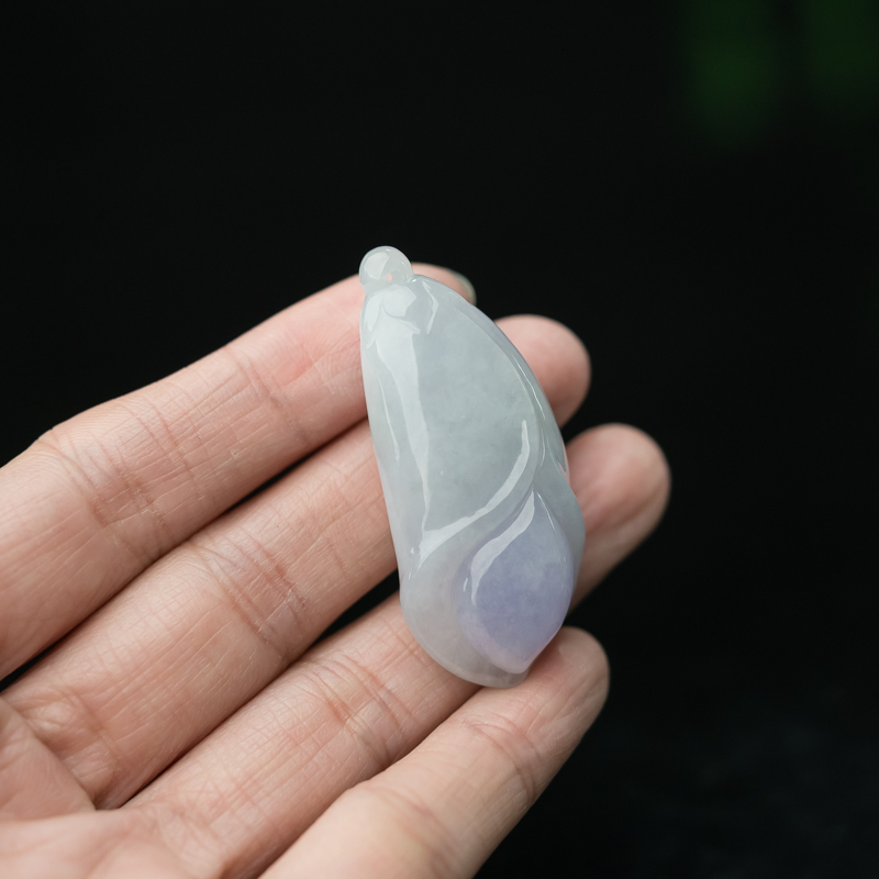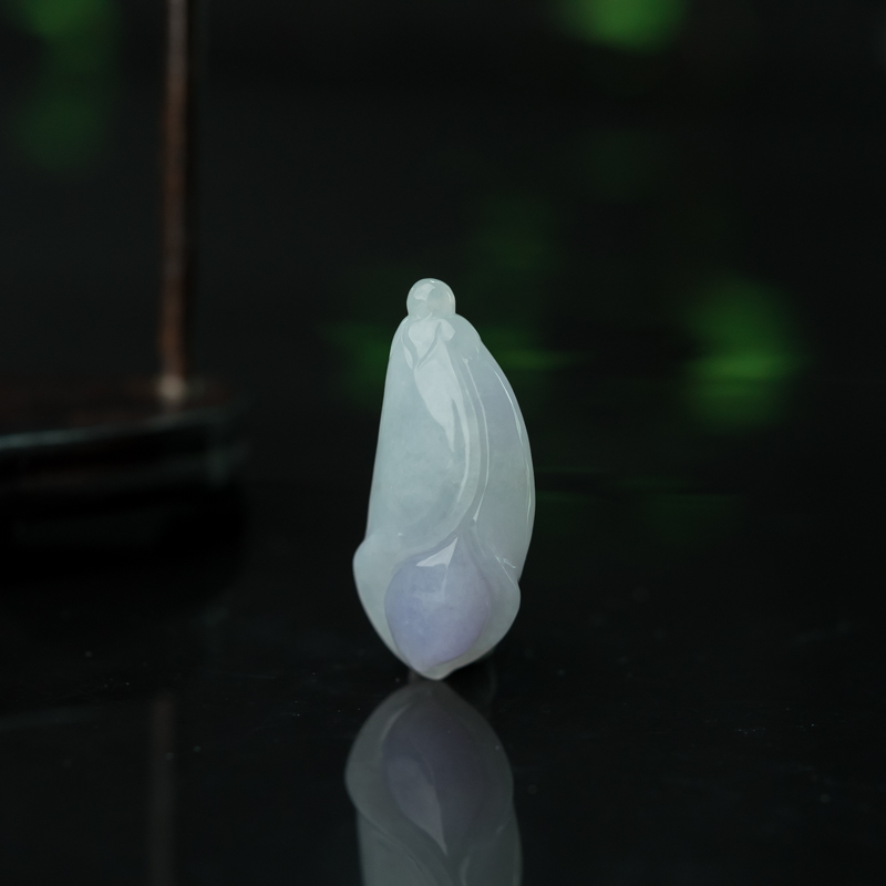 • 糯种春带彩翡翠玉兰花吊坠