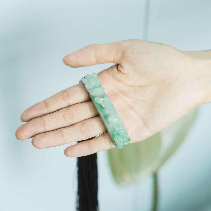 为了让珠宝的价值得到更大程度的体现,每一个作品都是根据料子本身做专业的设计,让每件作品都有灵魂。设计好以后会根据设计创意做专业的镶嵌或雕刻,确保每个接口都严丝合缝,每一刀都流畅自如