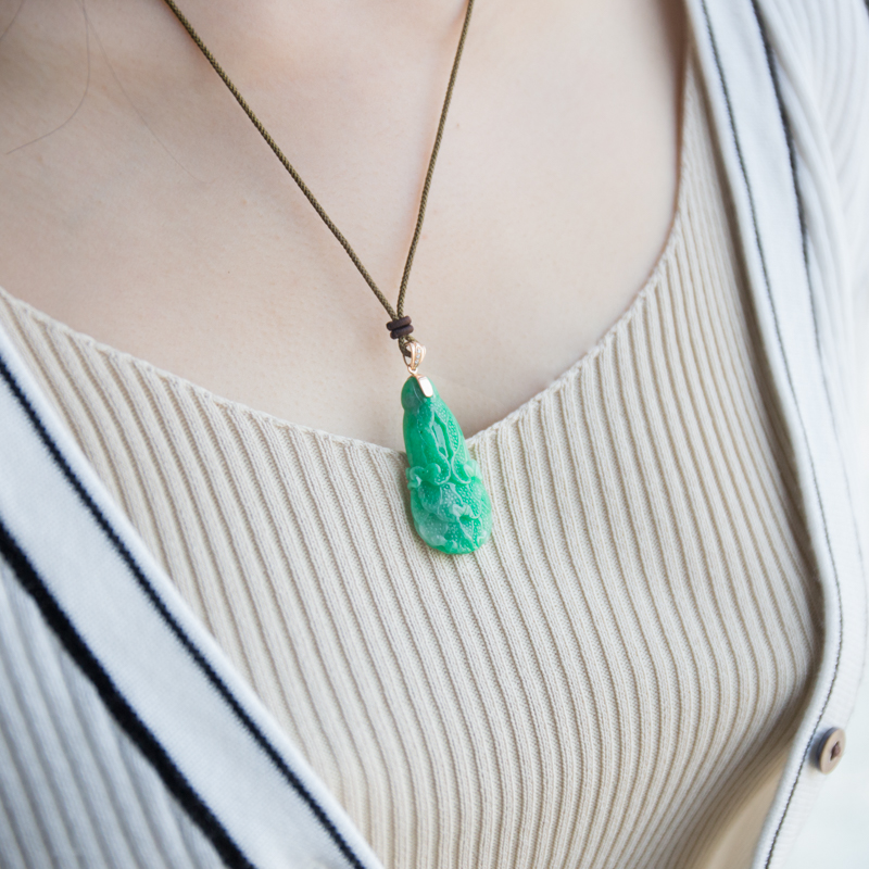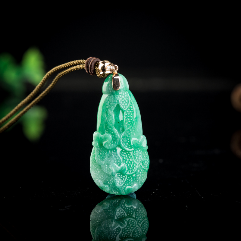 • [名  称] 18k糯种翠绿翡翠百财吊坠