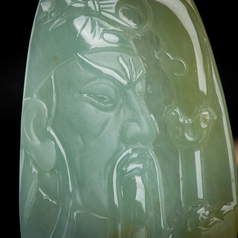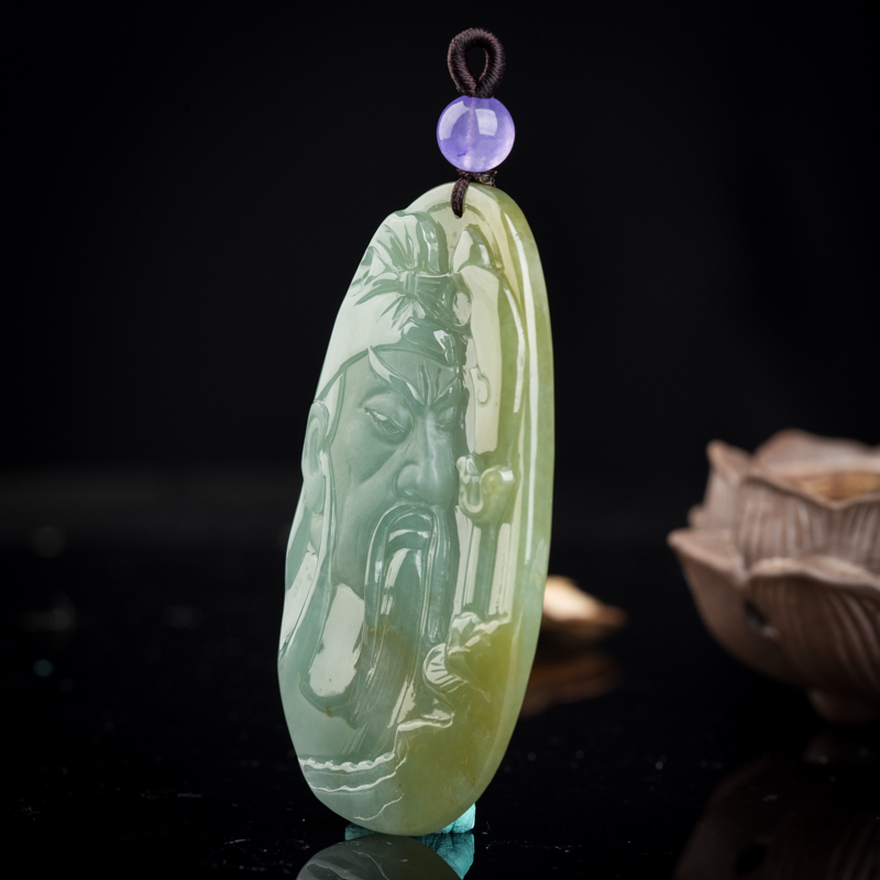 • 糯种俏色翡翠关羽吊坠
