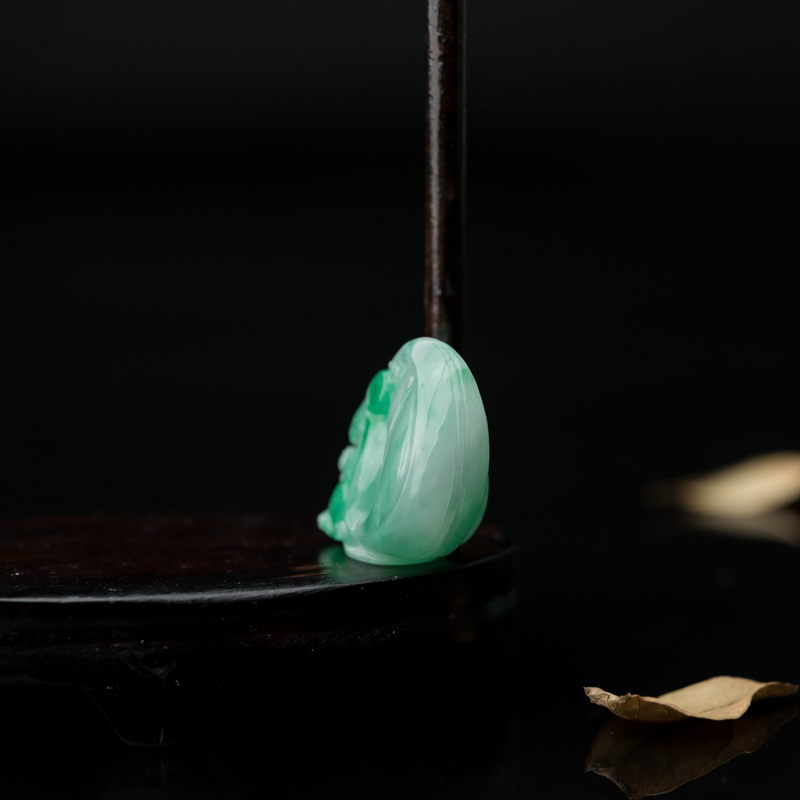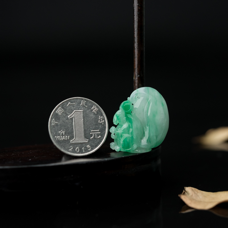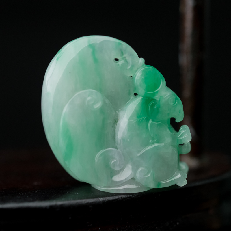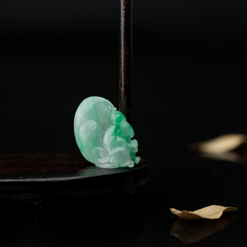 • 糯种飘翠翡翠福鼠运财吊坠