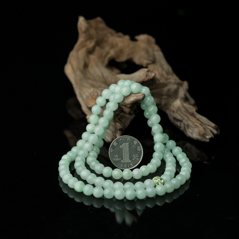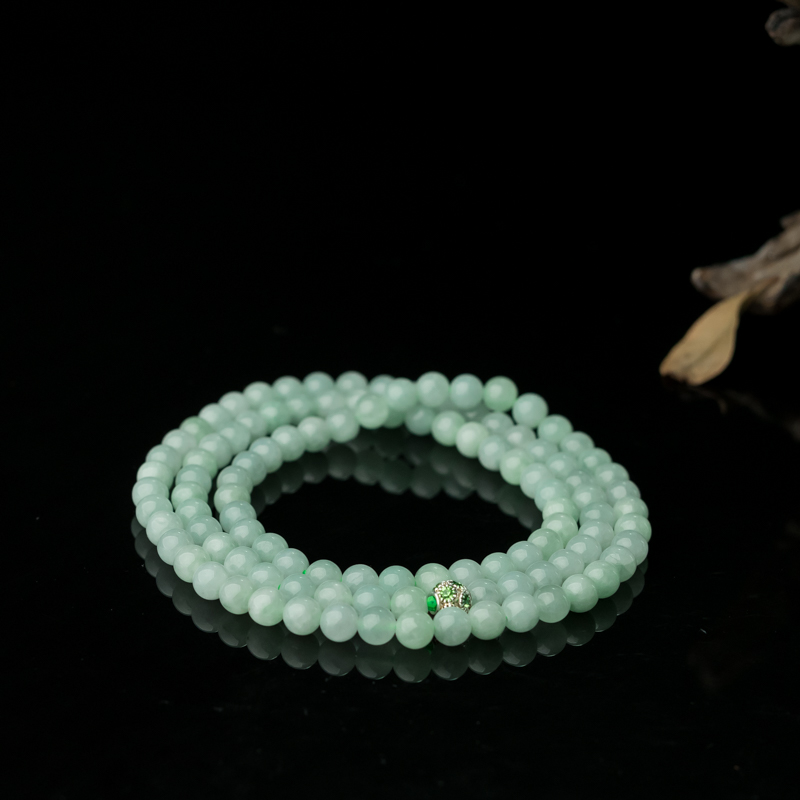 • 糯种浅绿翡翠108佛珠项链