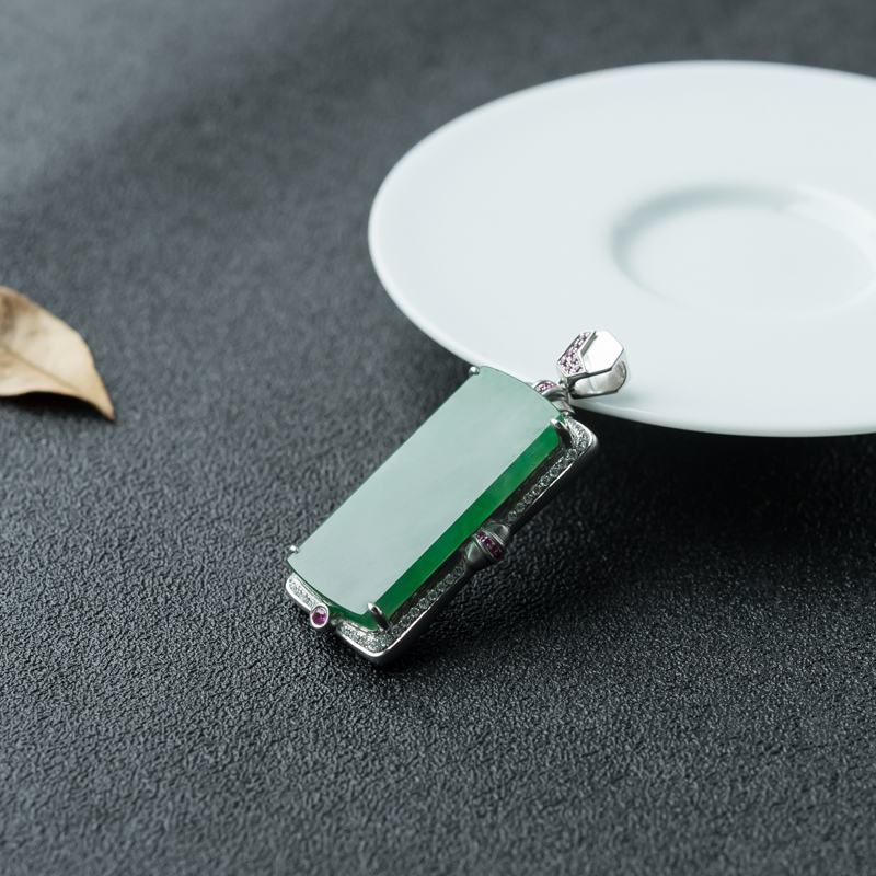 • [名  称] 18K糯种翠绿翡翠无事牌吊坠
