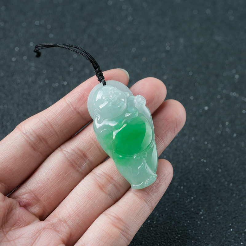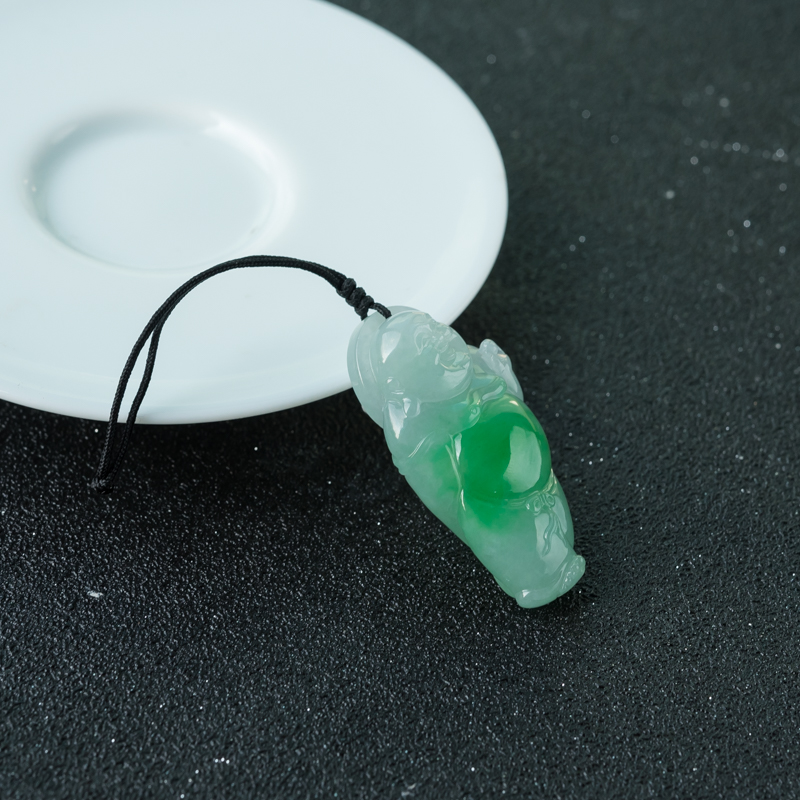 • 糯种飘翠翡翠弥勒佛吊坠