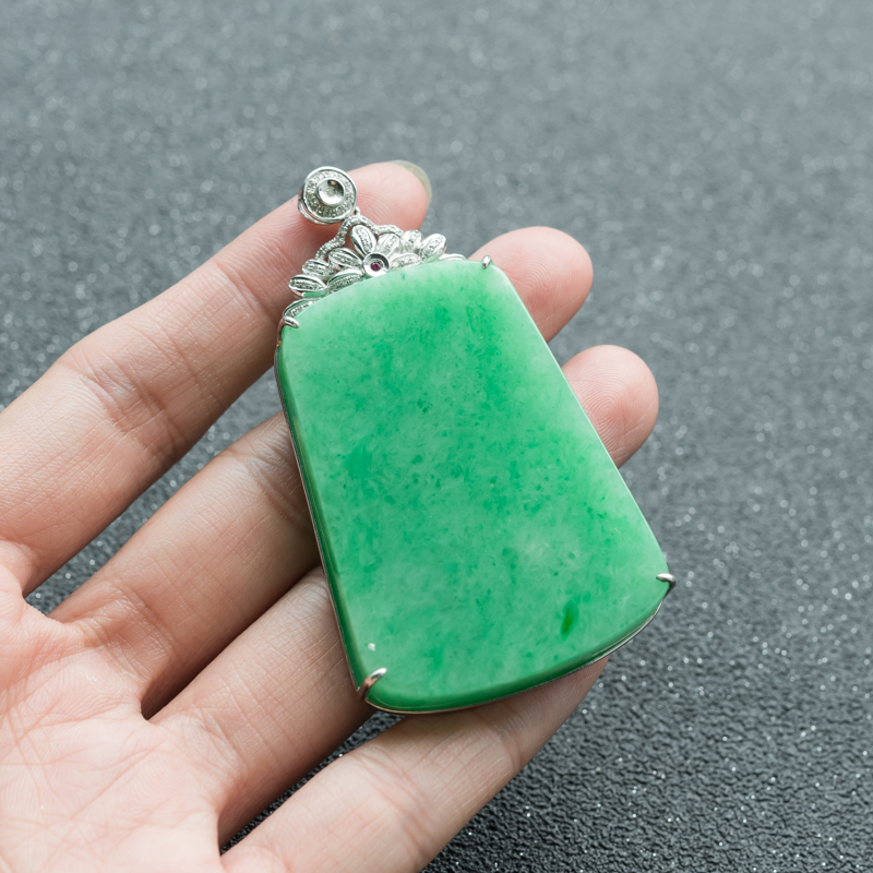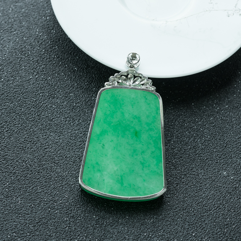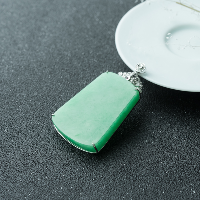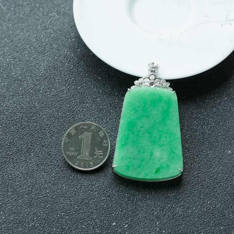• [名  称] 18K糯种苹果绿翡翠无事牌吊坠