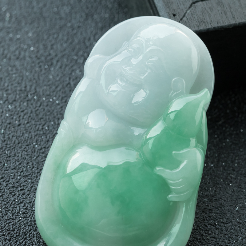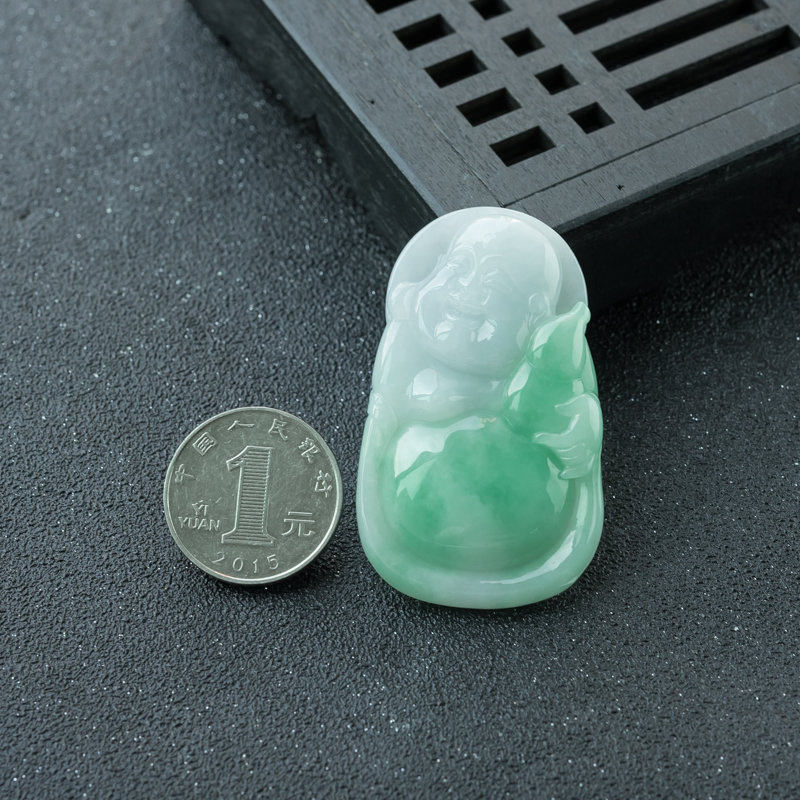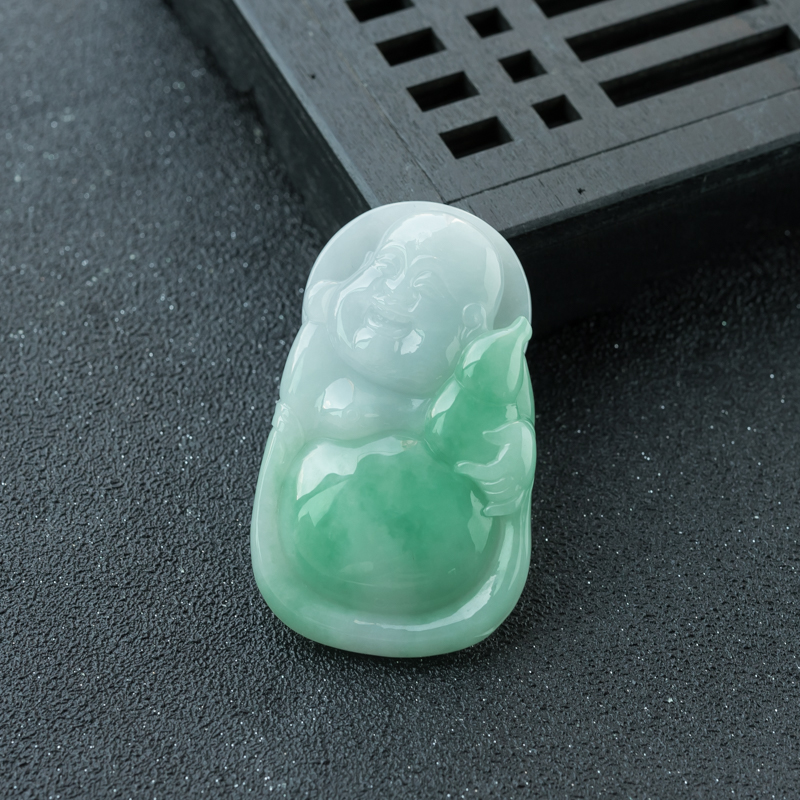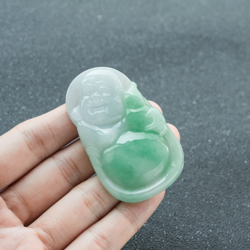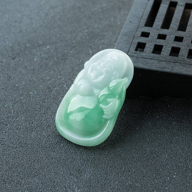 • 糯种飘翠翡翠弥勒佛吊坠