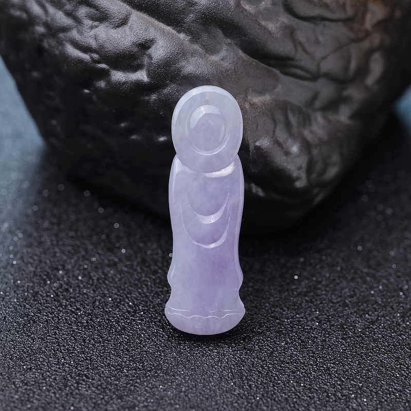• 糯种浅紫色翡翠观音吊坠