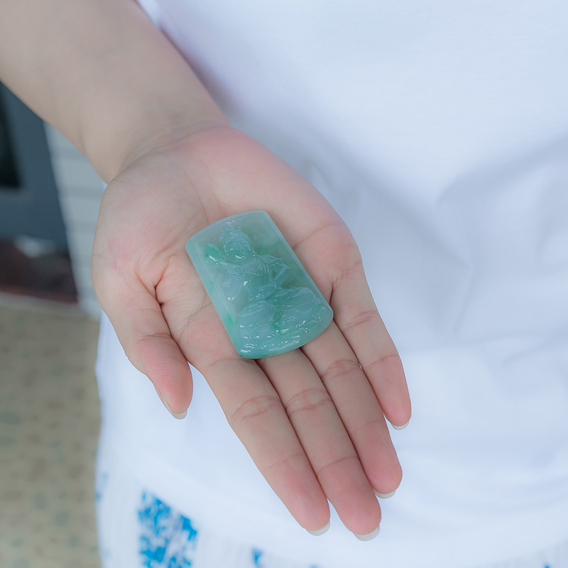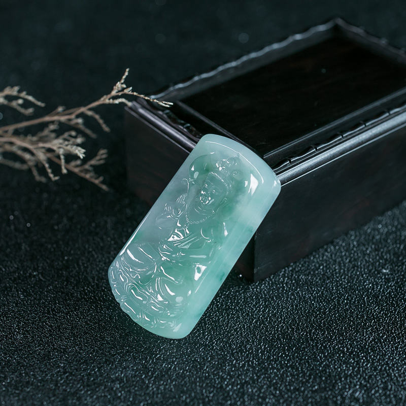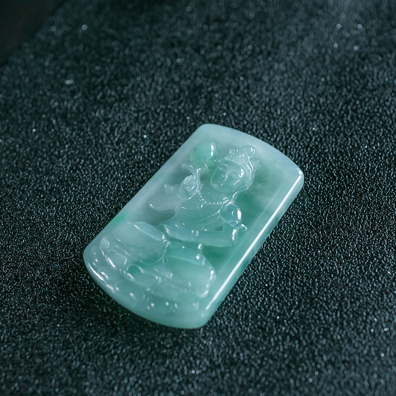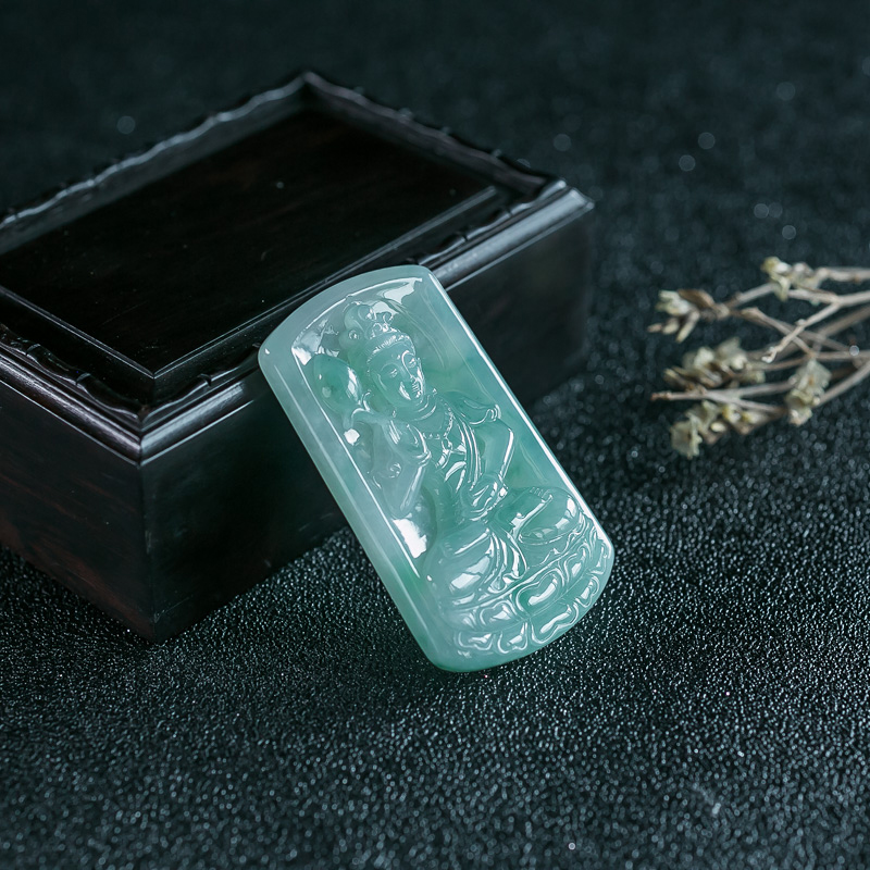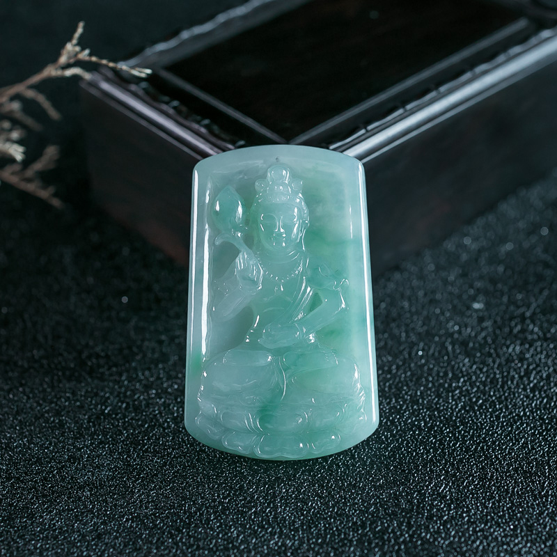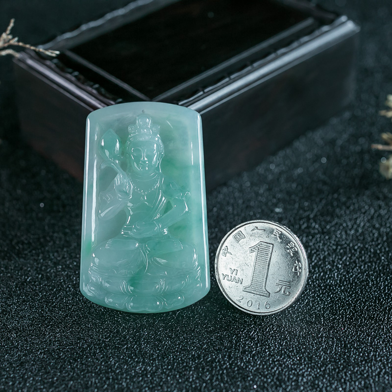 • 糯种浅绿翡翠大势至菩萨吊坠