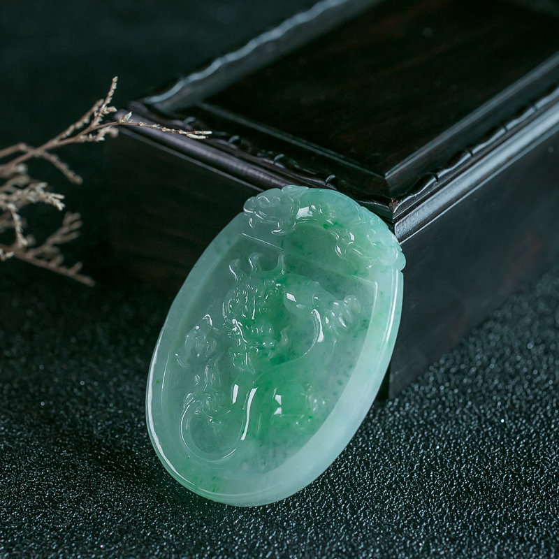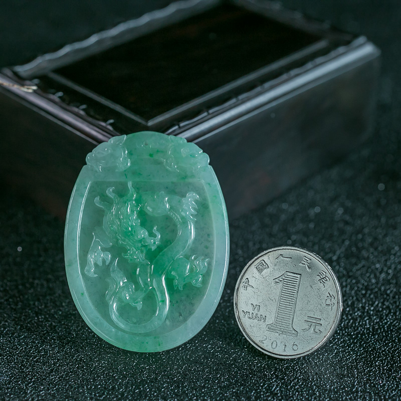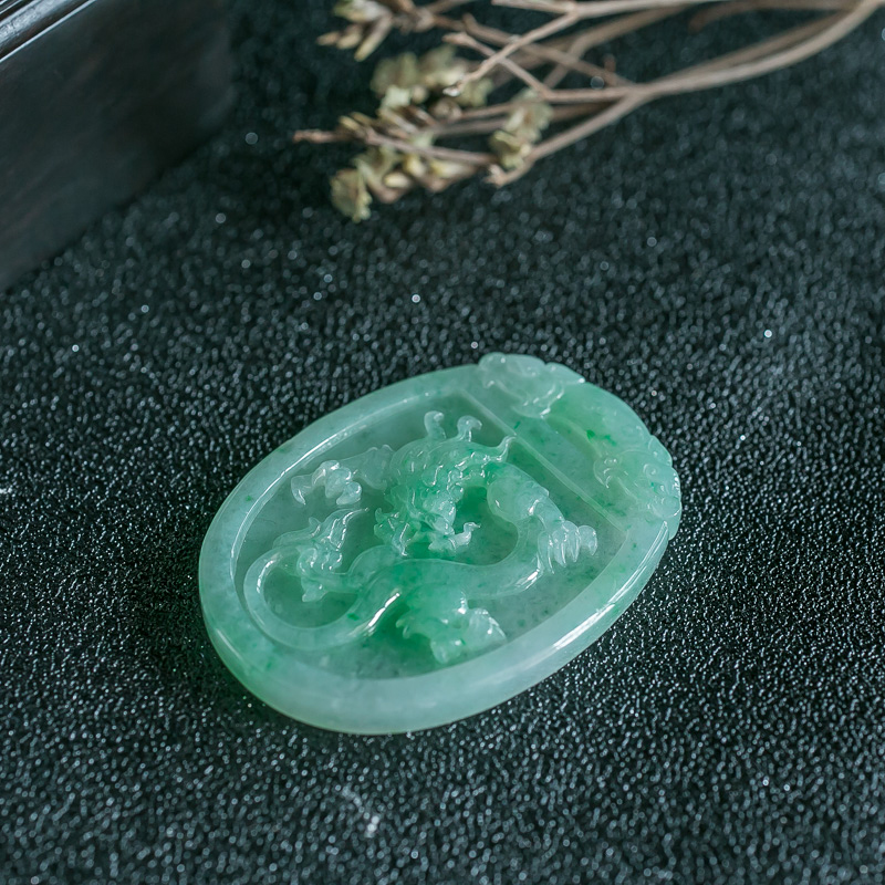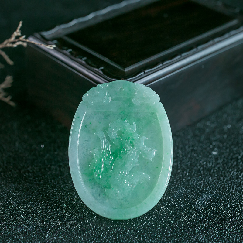 • 糯种浅绿翡翠龙牌吊坠