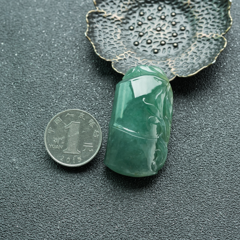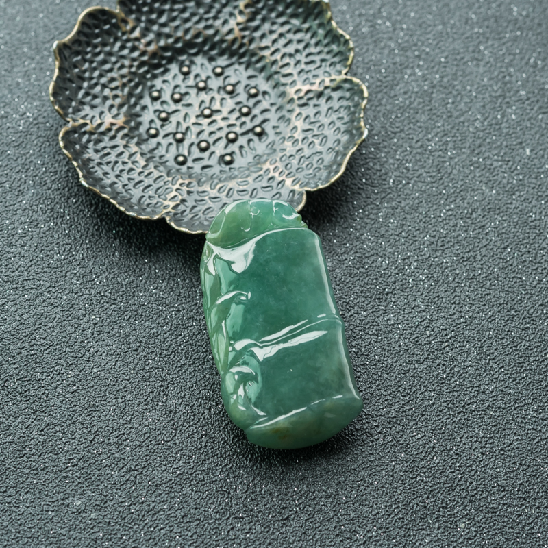 • 糯种深绿翡翠节节高升吊坠