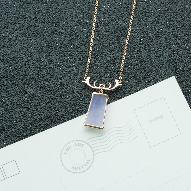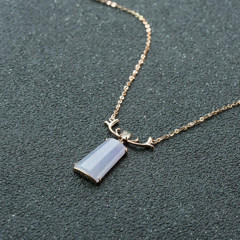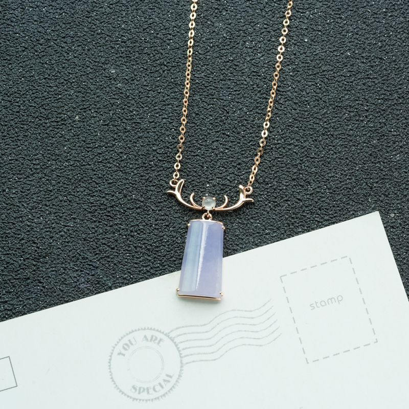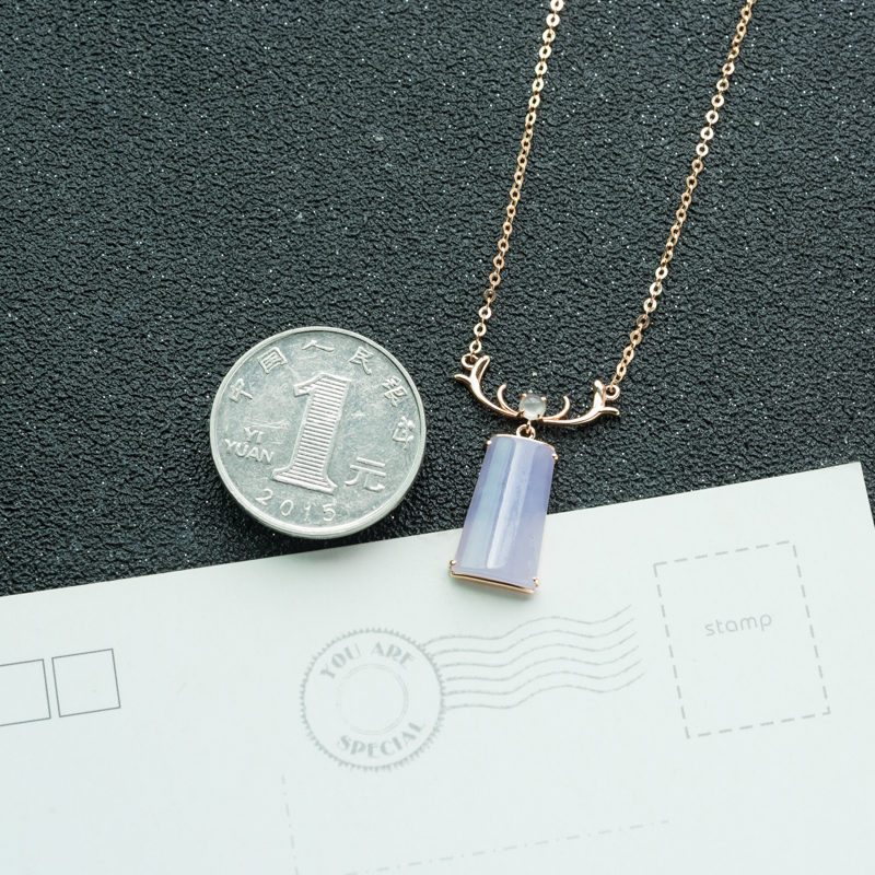 • 18K糯种紫罗兰翡翠无事牌吊坠