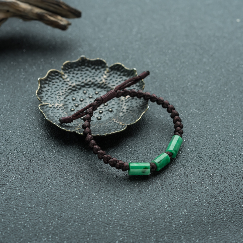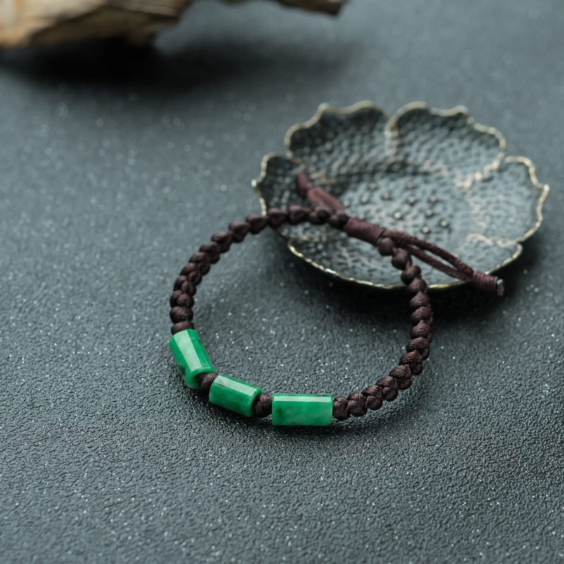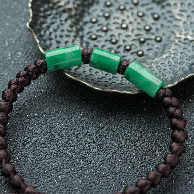 • 6.5mm糯种飘花翡翠桶珠单圈手串