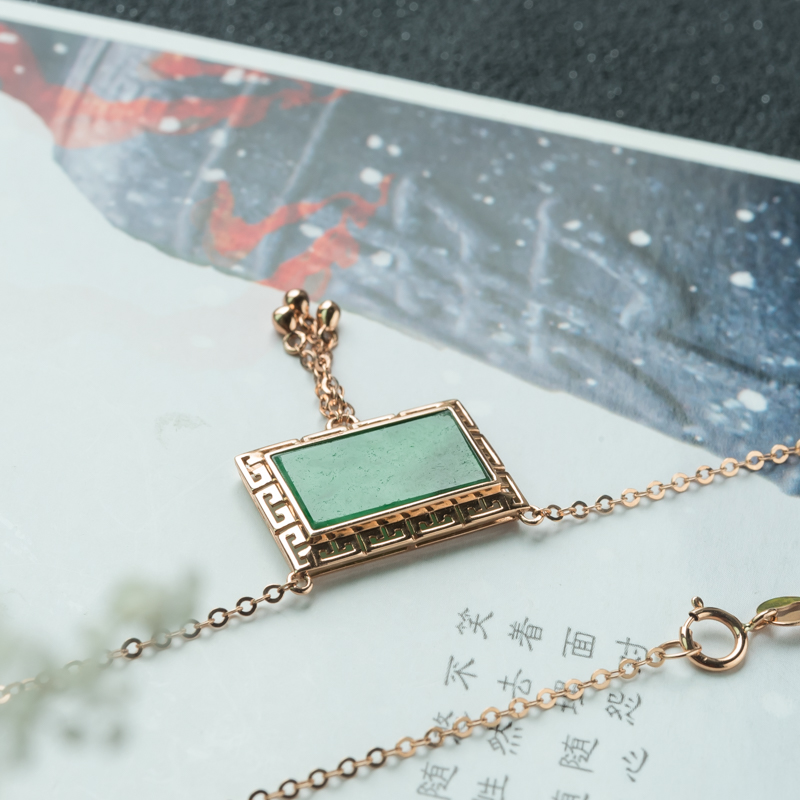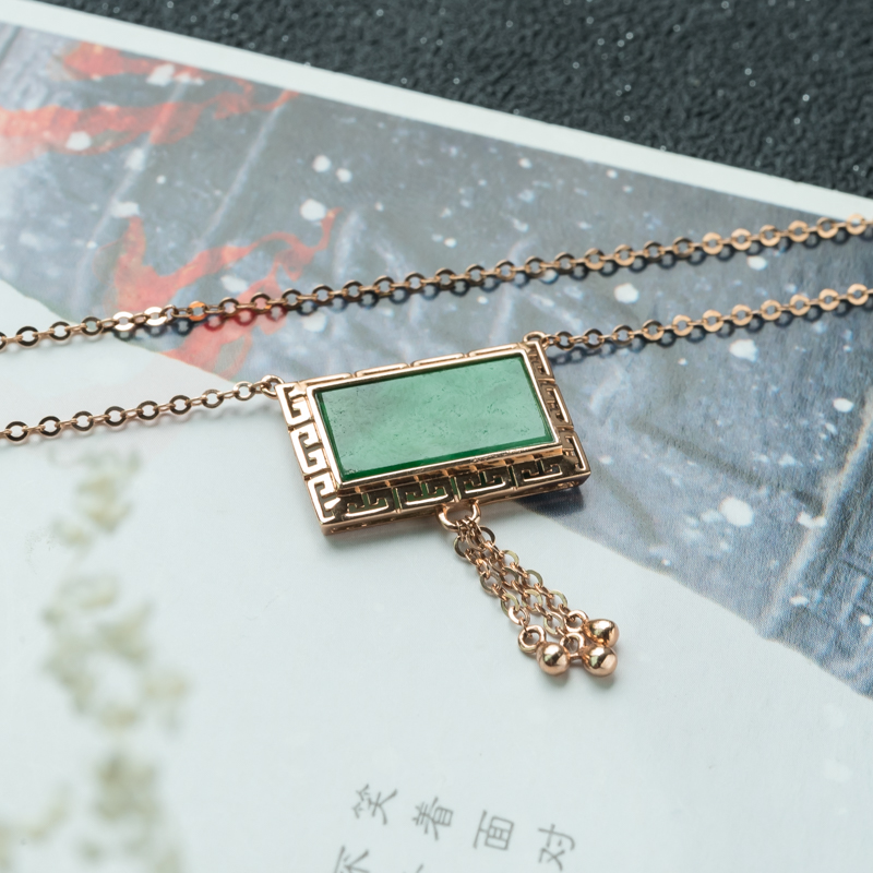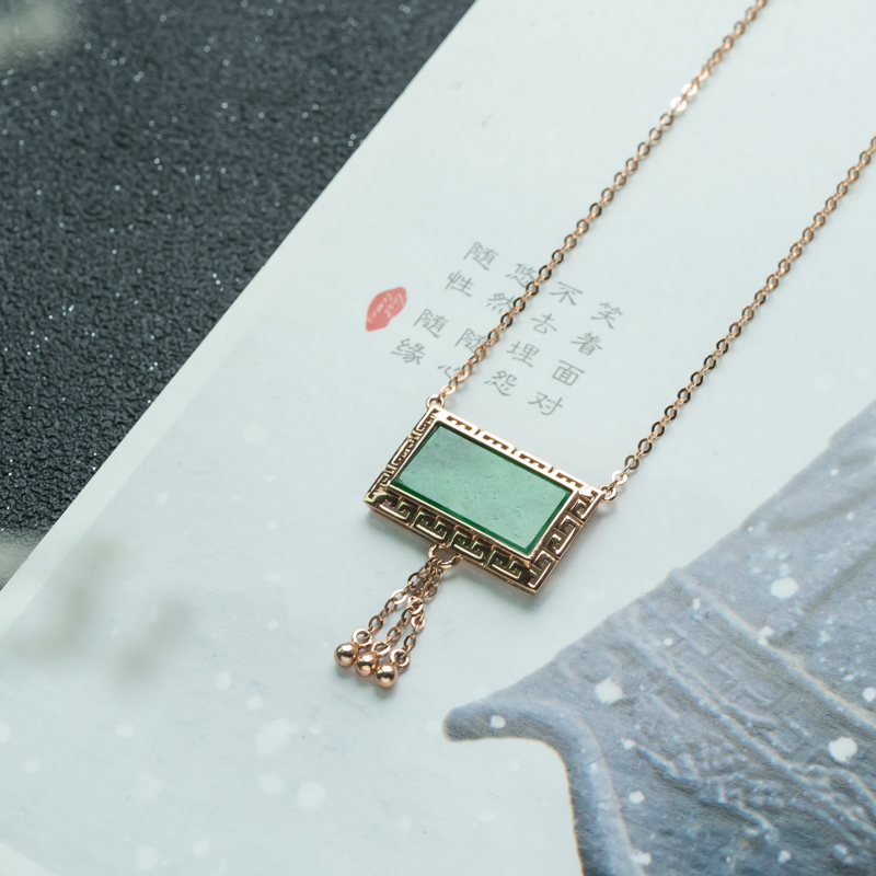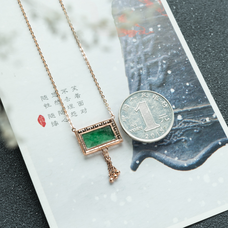 • 18K糯种翠绿翡翠项链