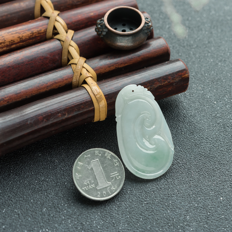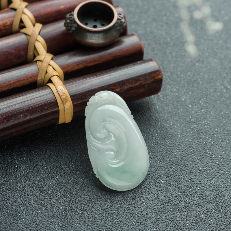 • 糯种飘翠翡翠如意吊坠