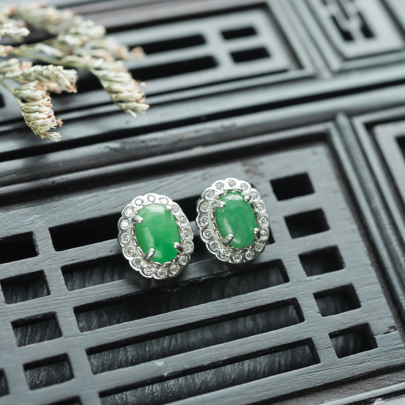 耳钉:主石长6.4mm宽4.2mm厚1.2mm