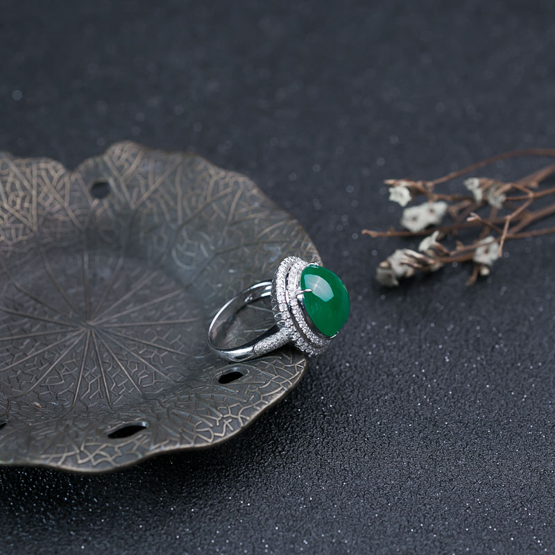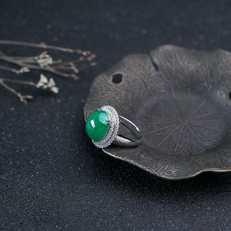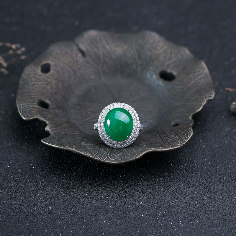 • 18K糯种翠绿翡翠戒指
