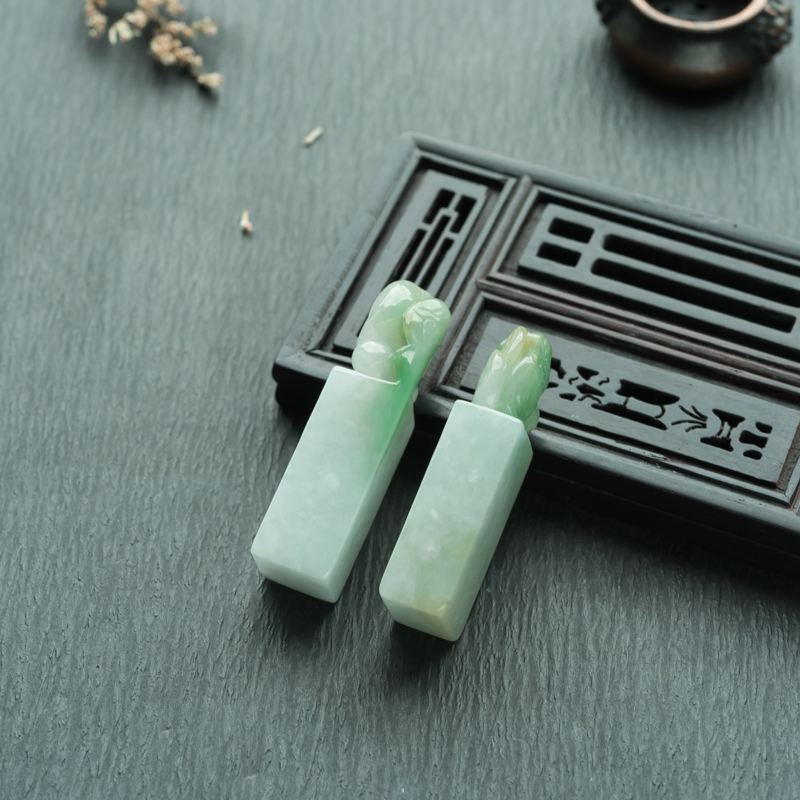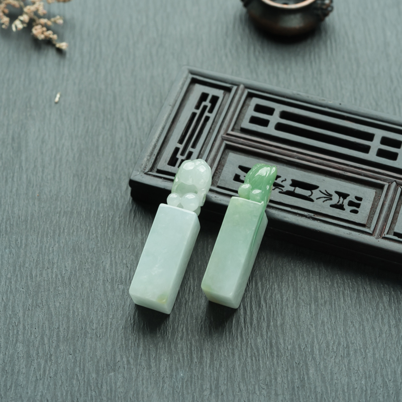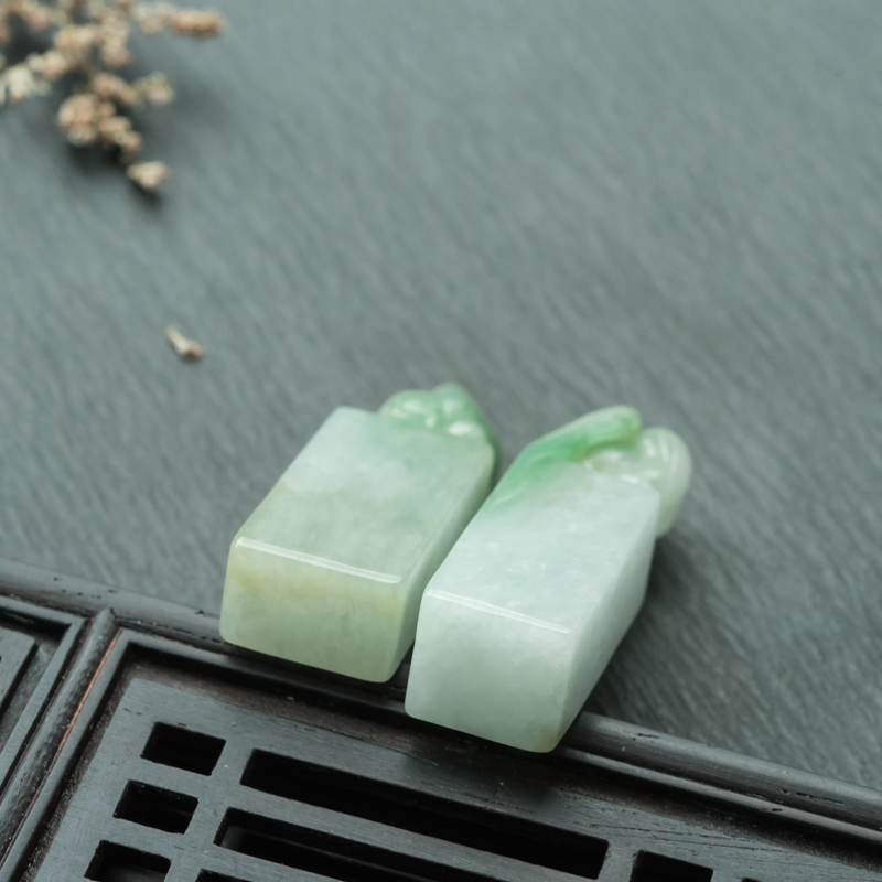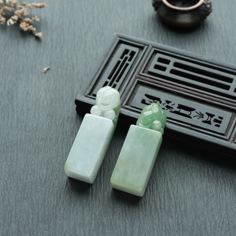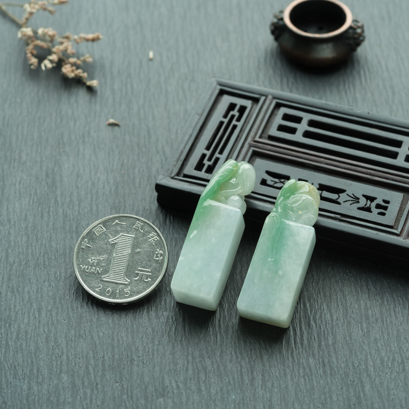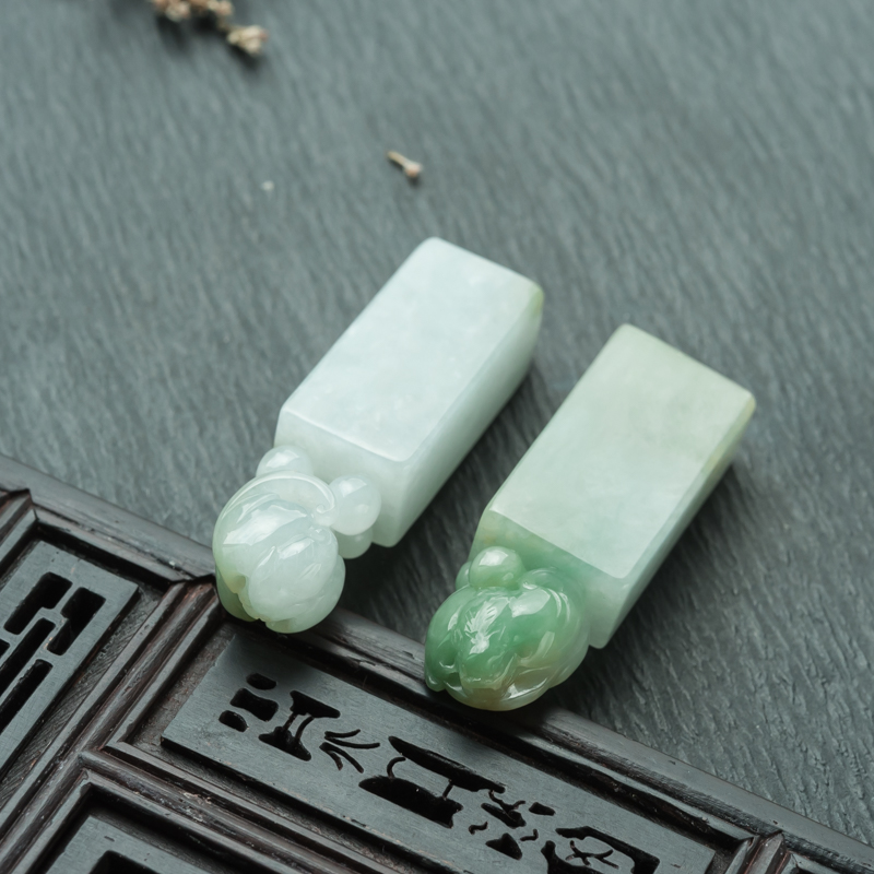 • [名  称] 糯种俏色翡翠福在眼前印章(一对)