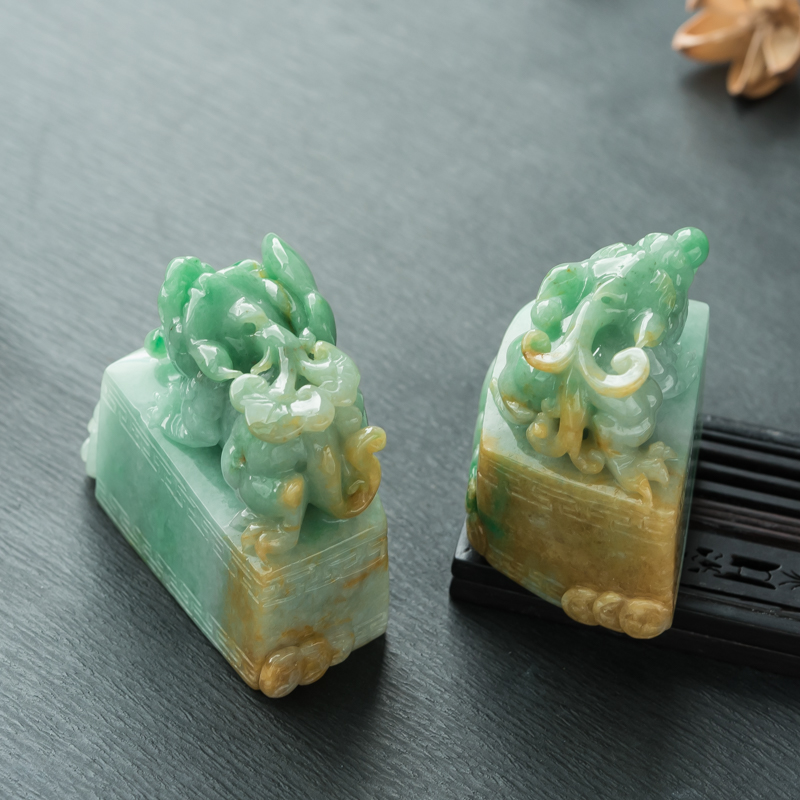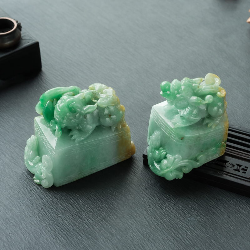 • [名  称] 糯种俏色翡翠貔貅印章(一对)