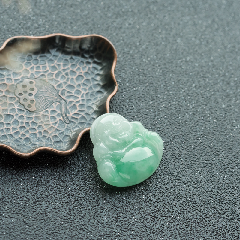 • [名  称] 糯种浅绿翡翠弥勒佛吊坠