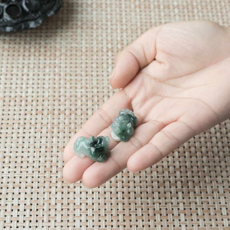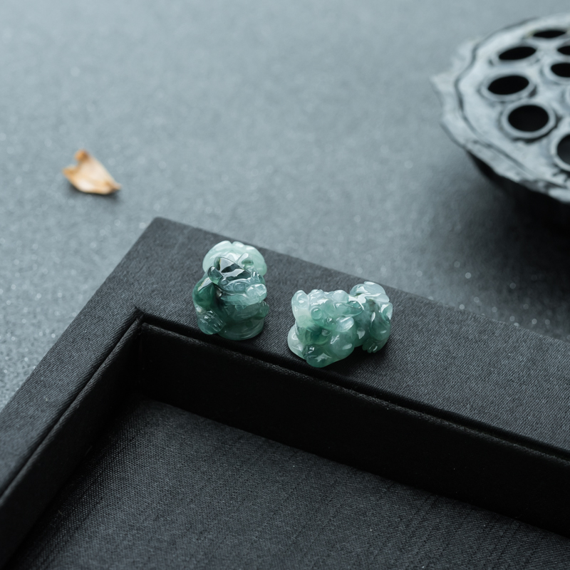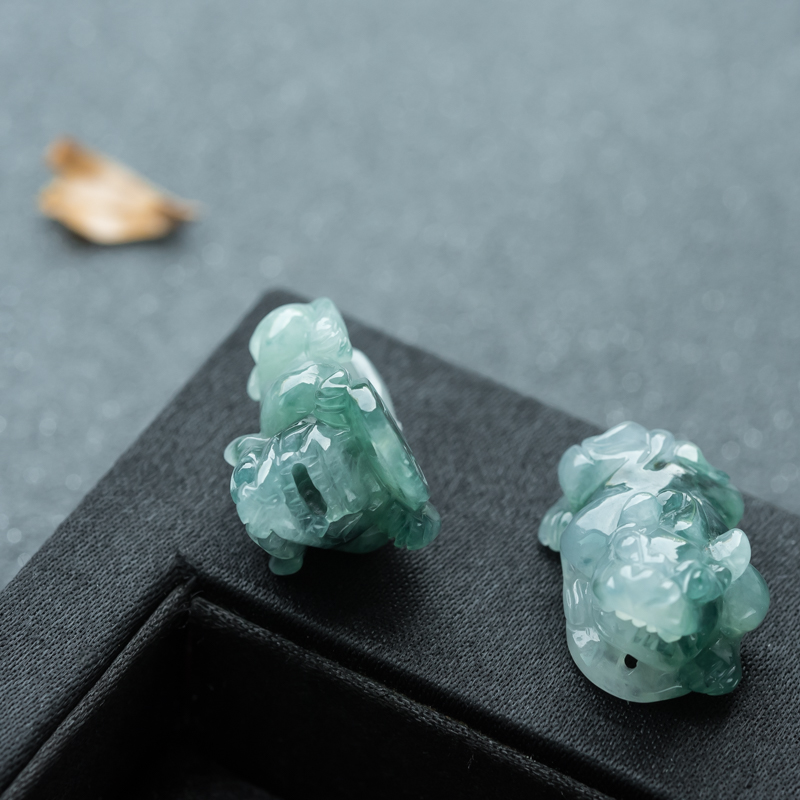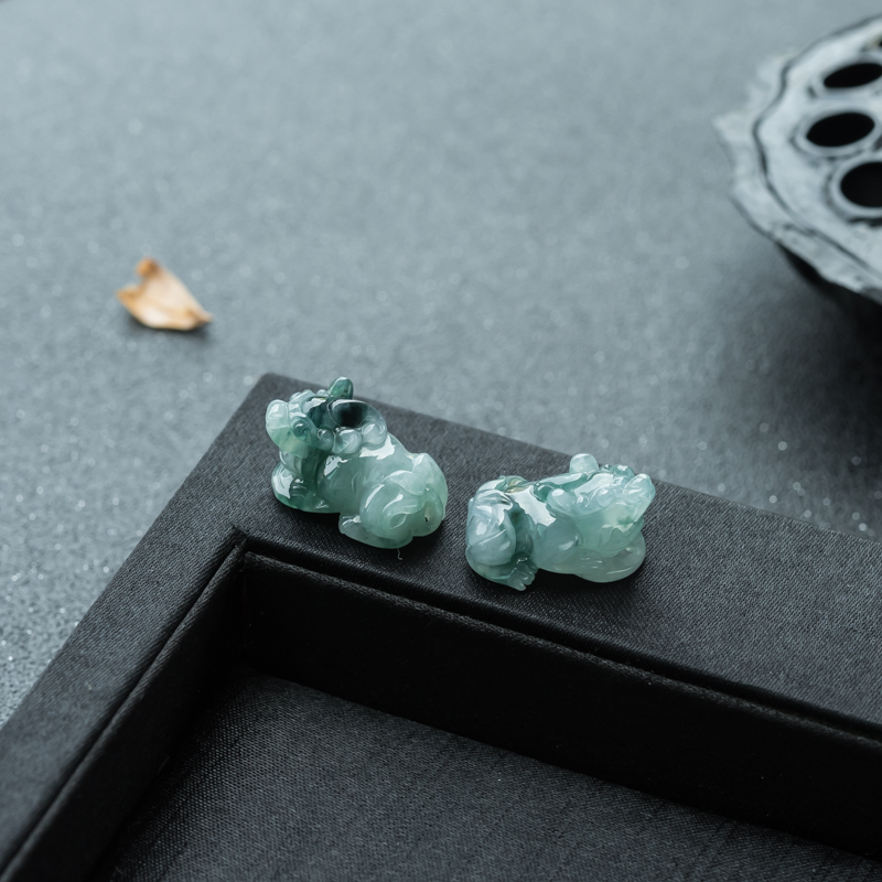 • 糯种飘花翡翠貔貅吊坠(一对)