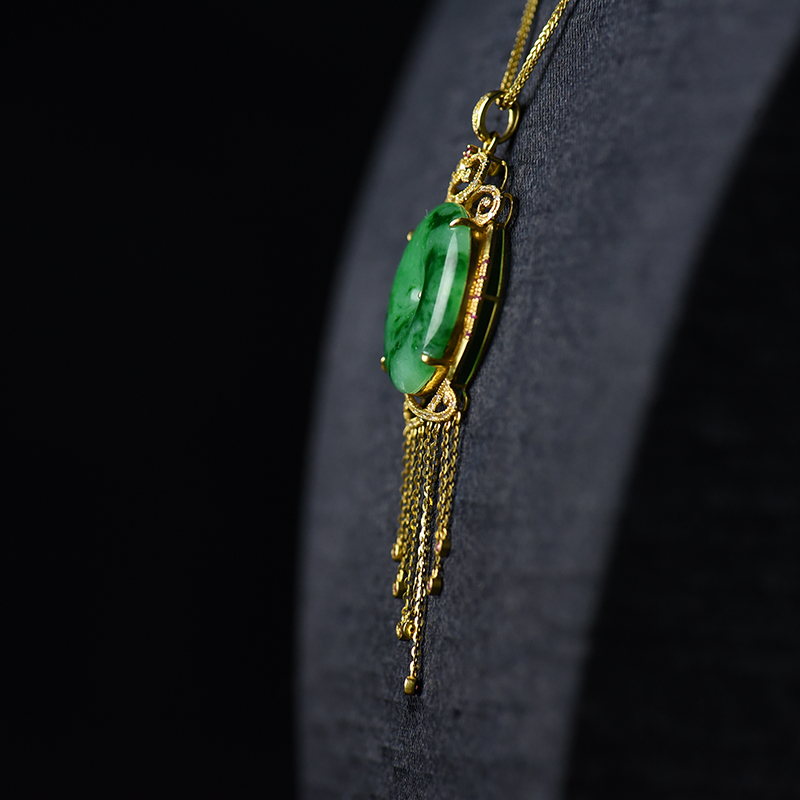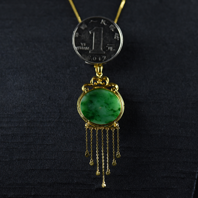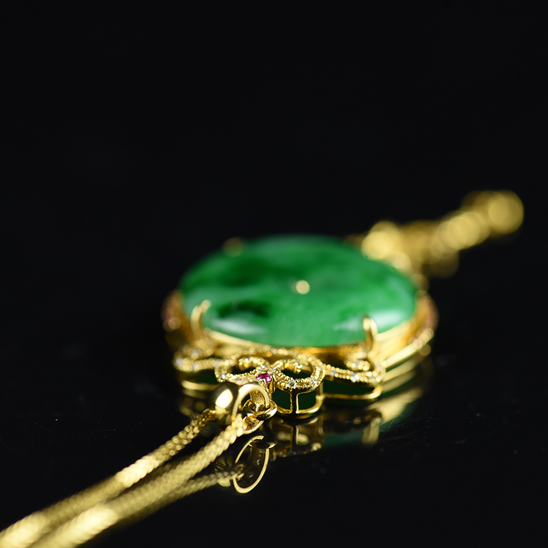 • 18k金镶糯种飘翠翡翠平安扣吊坠
