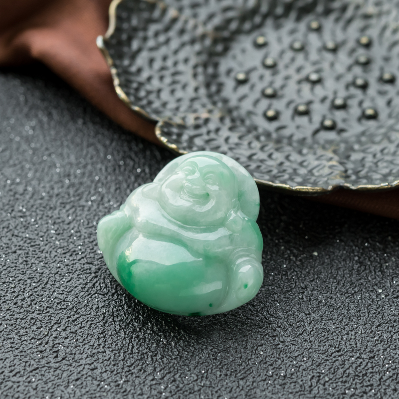 • 糯种飘翠翡翠弥勒佛吊坠