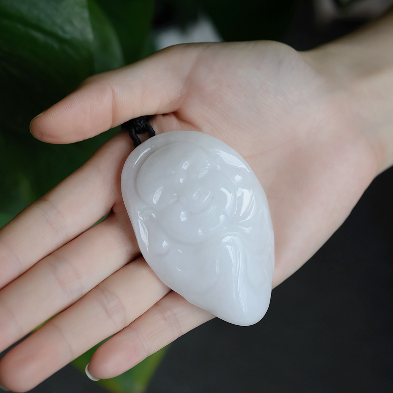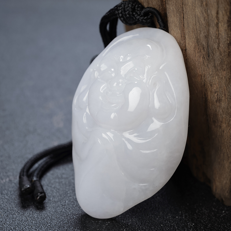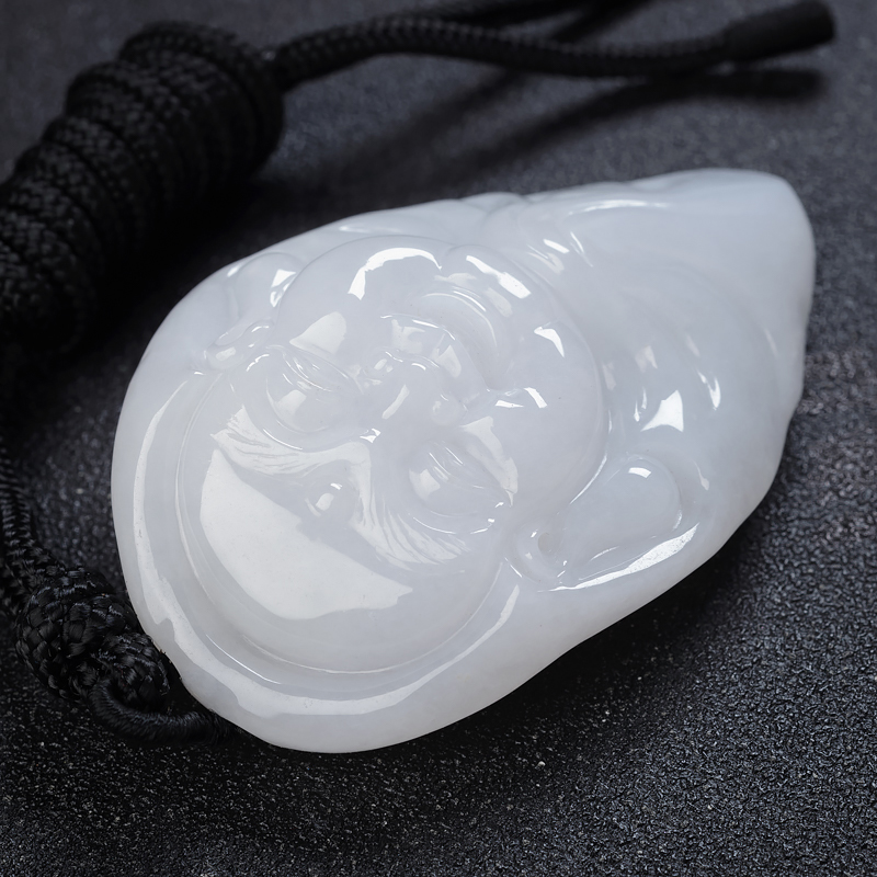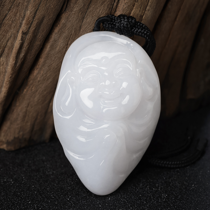 • 糯种白色翡翠弥勒佛吊坠