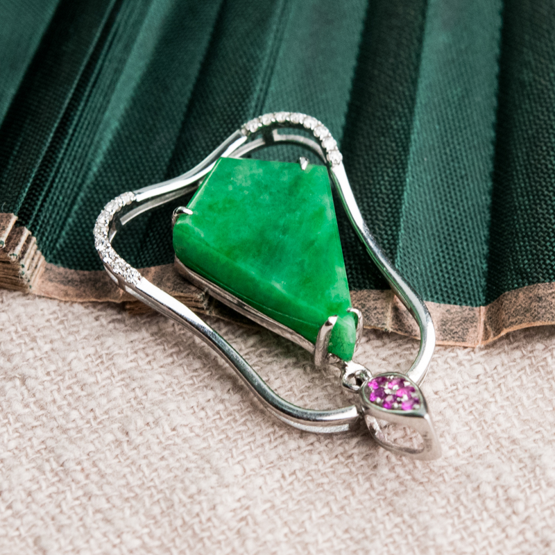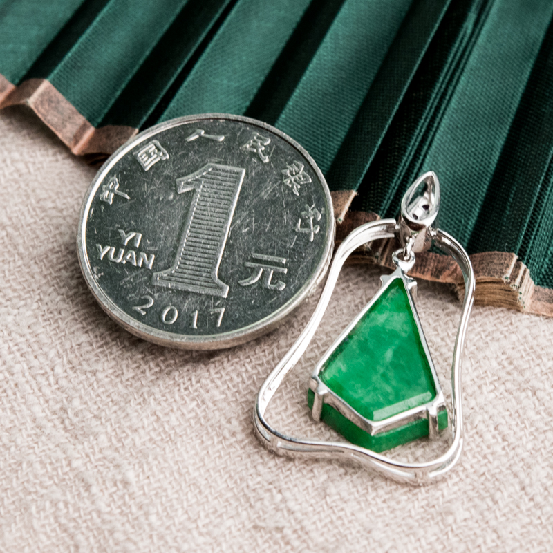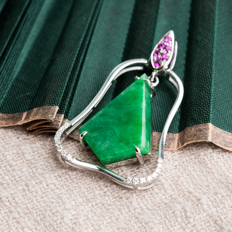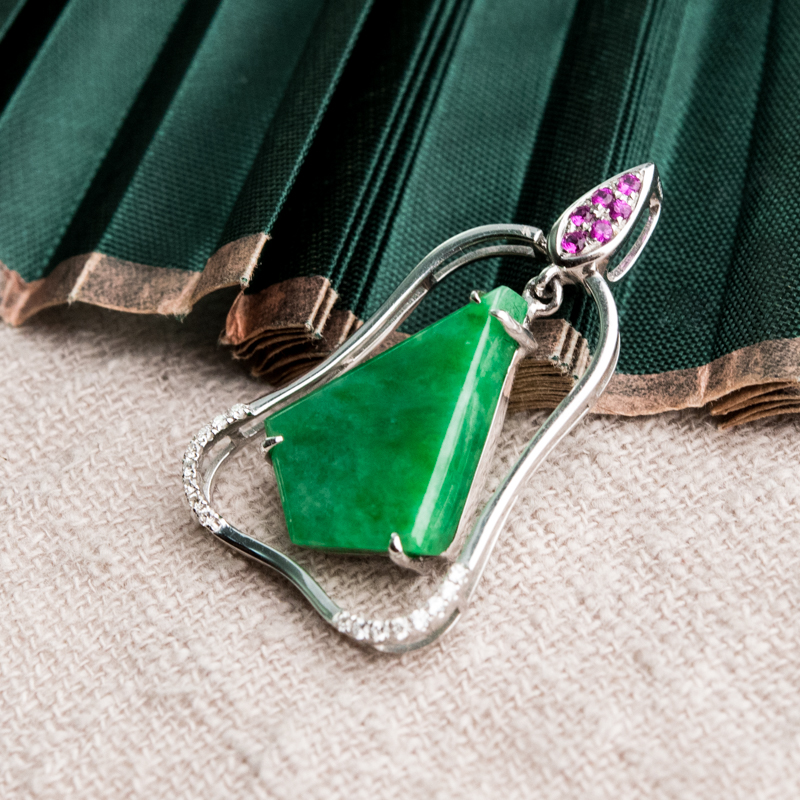 • 18K糯种翠绿翡翠吊坠