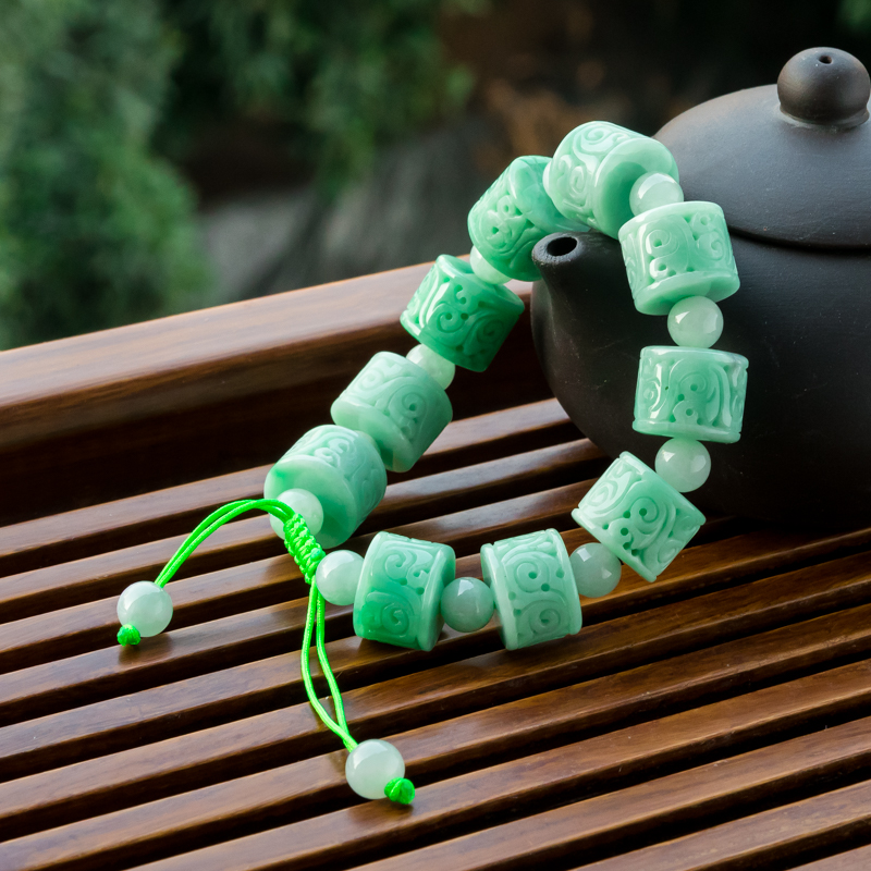 • 糯种浅绿翡翠单圈手串