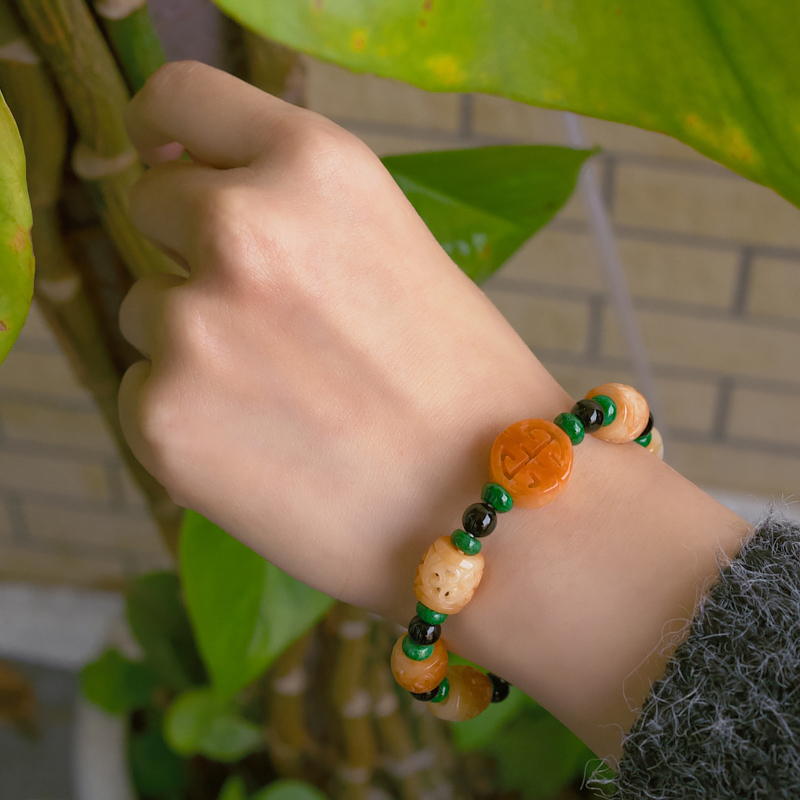 • [名  称] 糯种红翡雕刻桶珠单圈手串