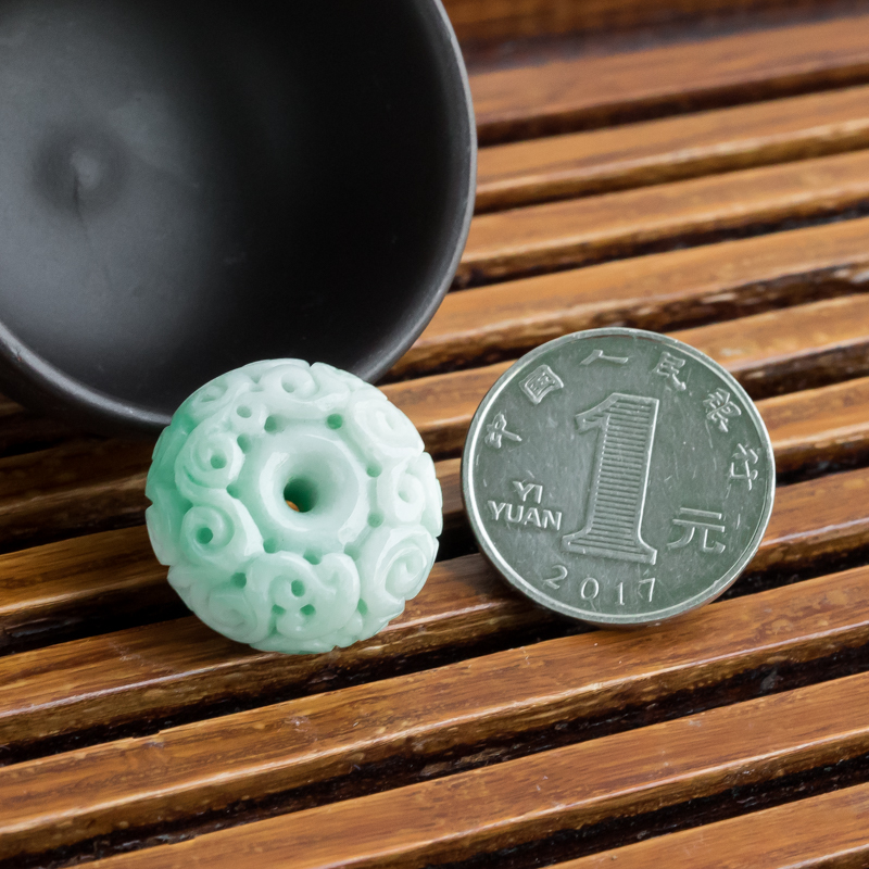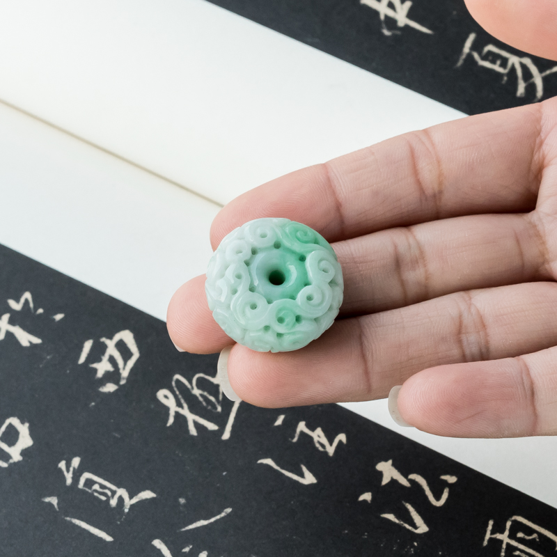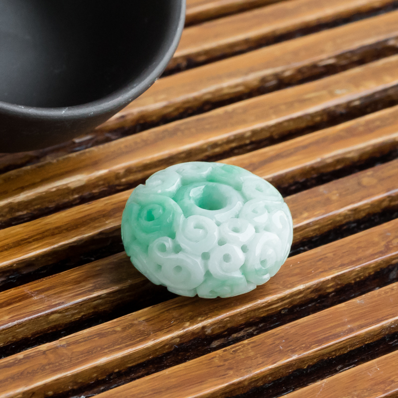 • 糯种飘翠翡翠缠枝纹平安扣吊坠