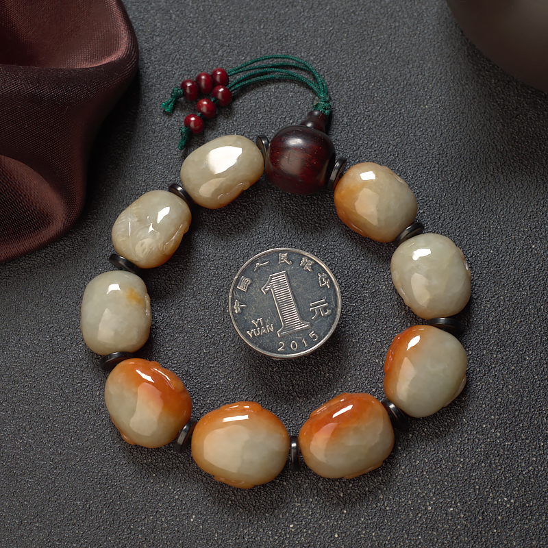 • [名  称] 糯种俏色翡翠佛头珠单圈手串