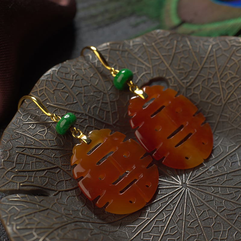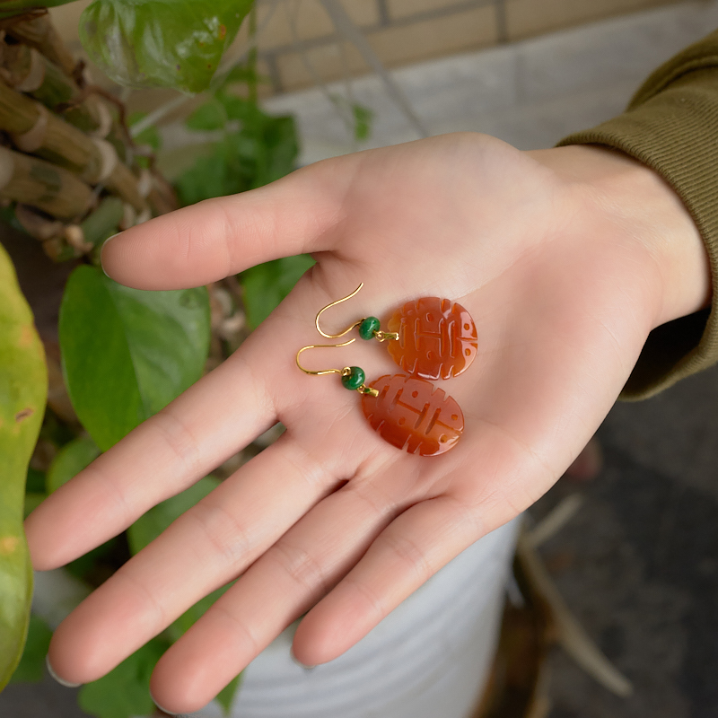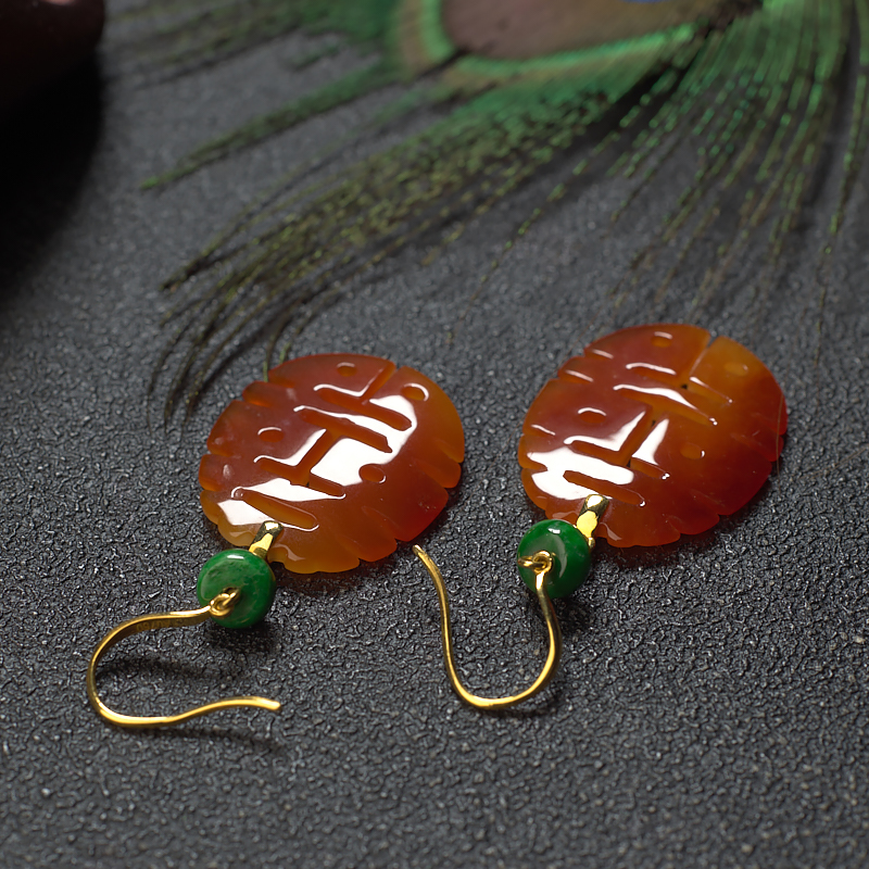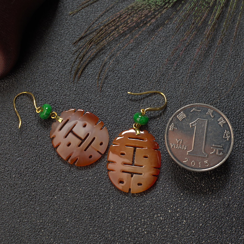• [名  称] 18K糯冰种红翡双喜耳坠