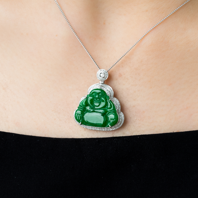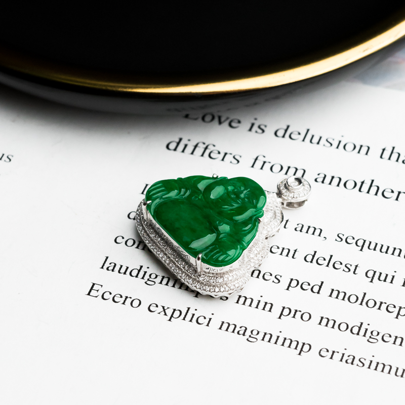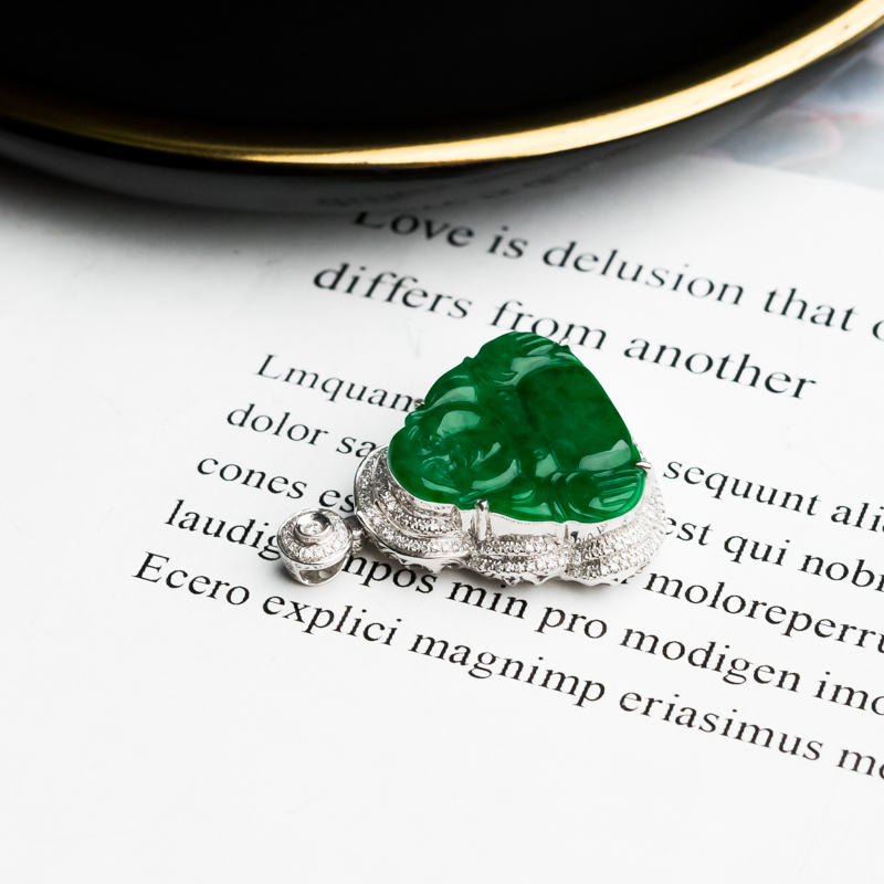 • 18K糯种翠绿翡翠弥勒佛吊坠