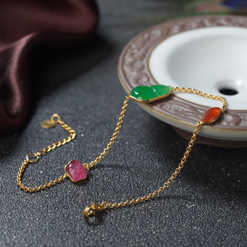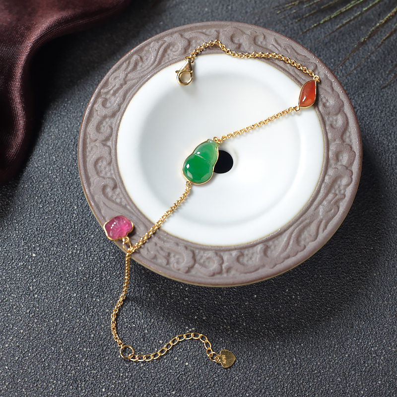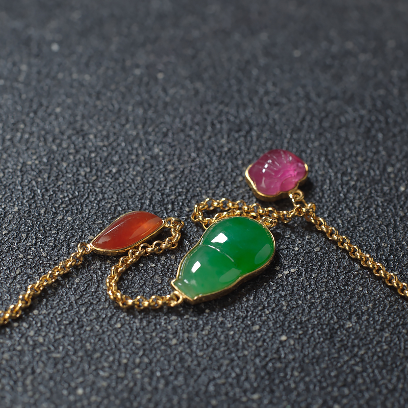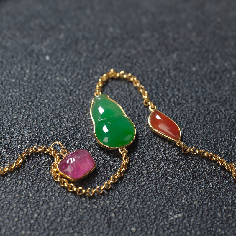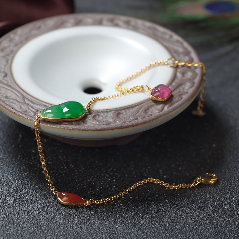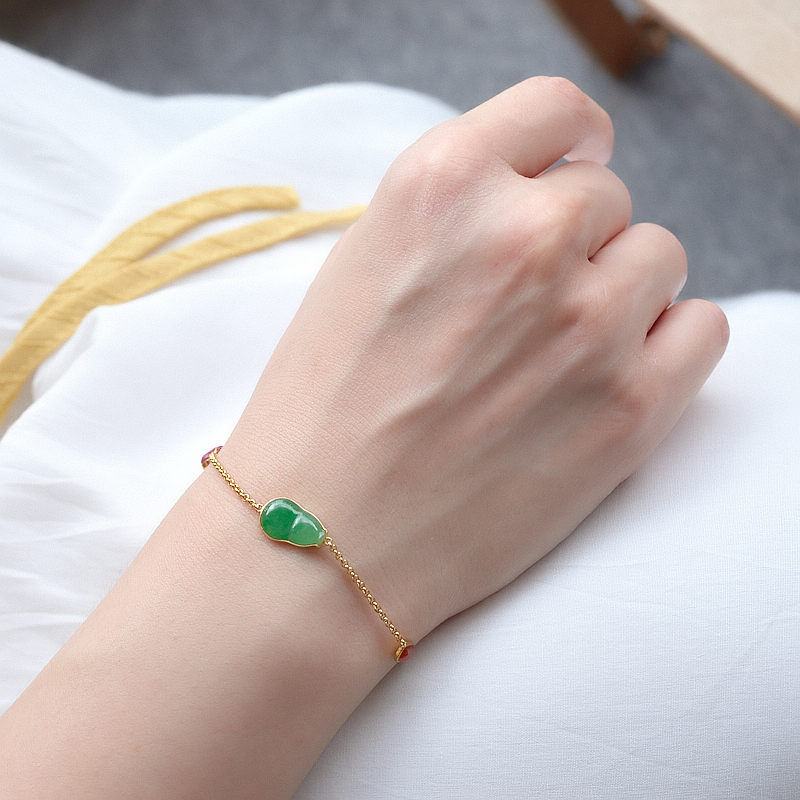 • [名  称] 18K糯种翠绿翡翠葫芦手链
