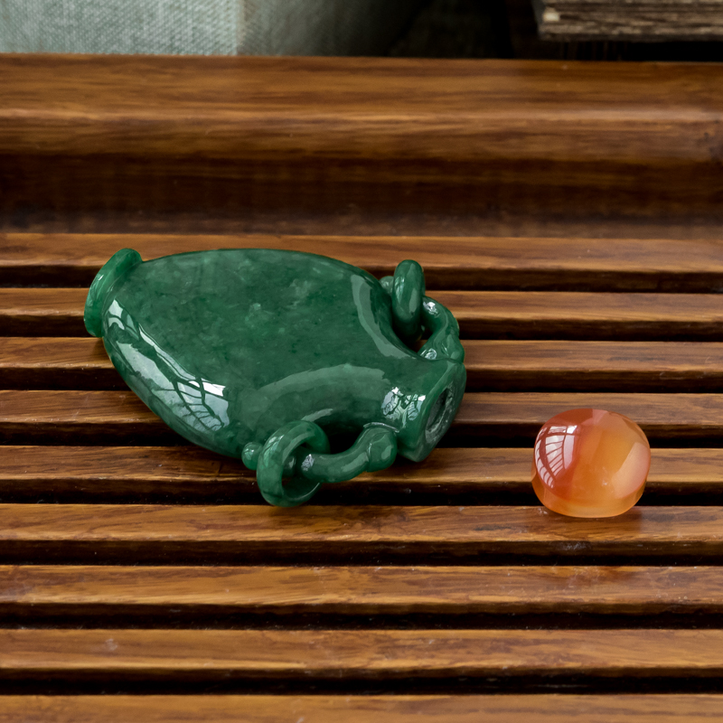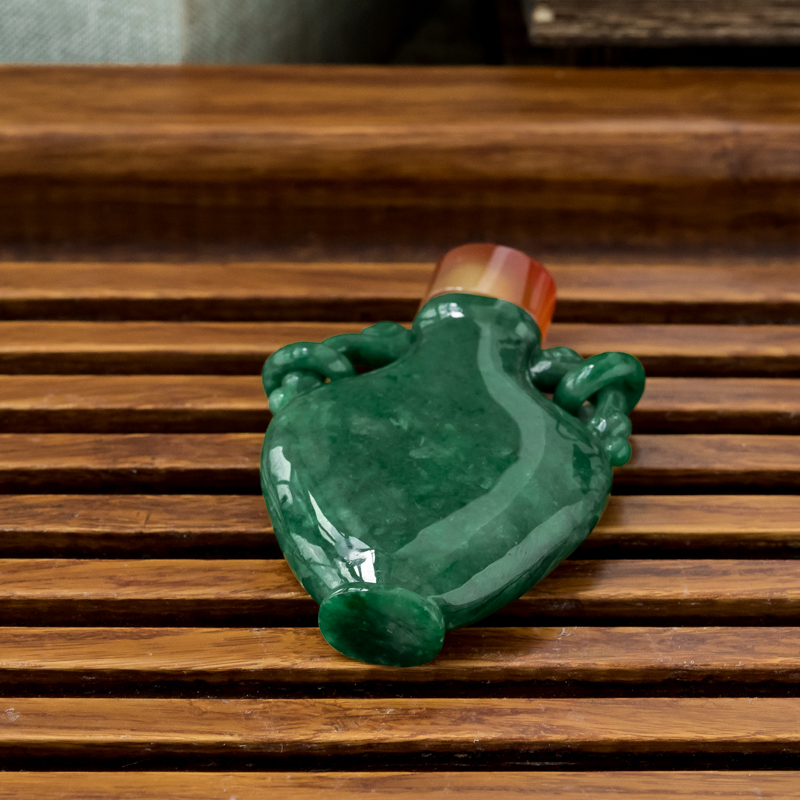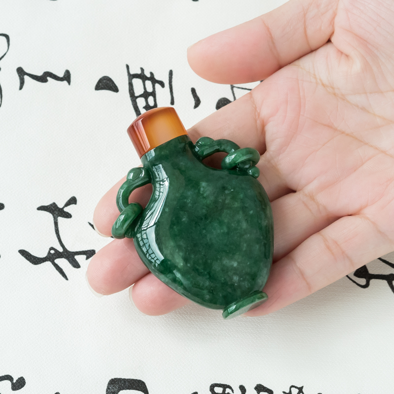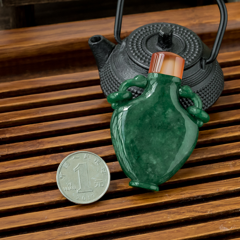 • [名  称] 糯种深绿翡翠鼻烟壶