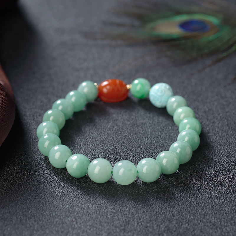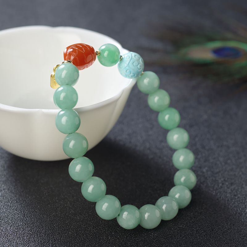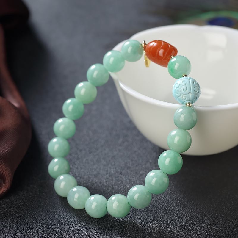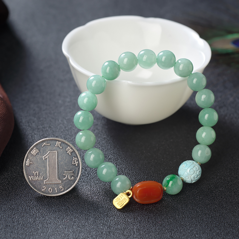 • [名  称] 8.5mm糯种浅绿翡翠单圈手串
