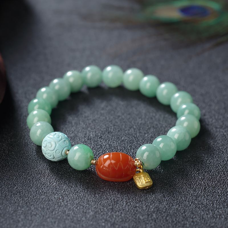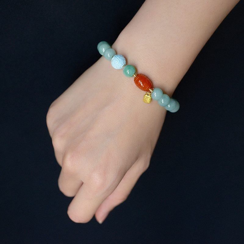 • [产品描述] 配饰:南红、绿松石、24K金福牌、18K金饰、18K金扣
