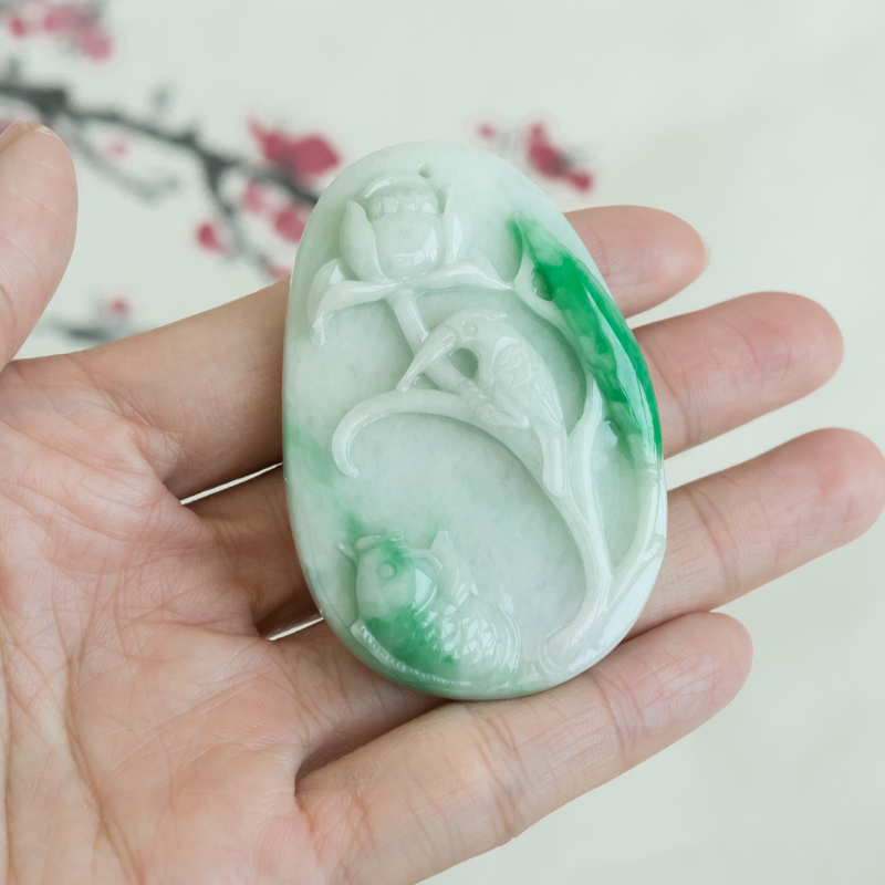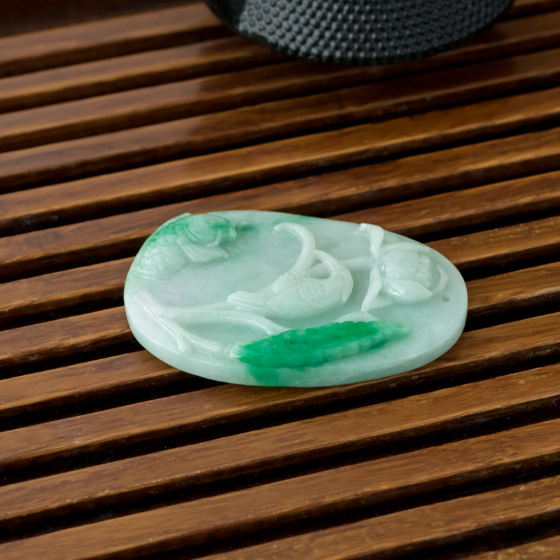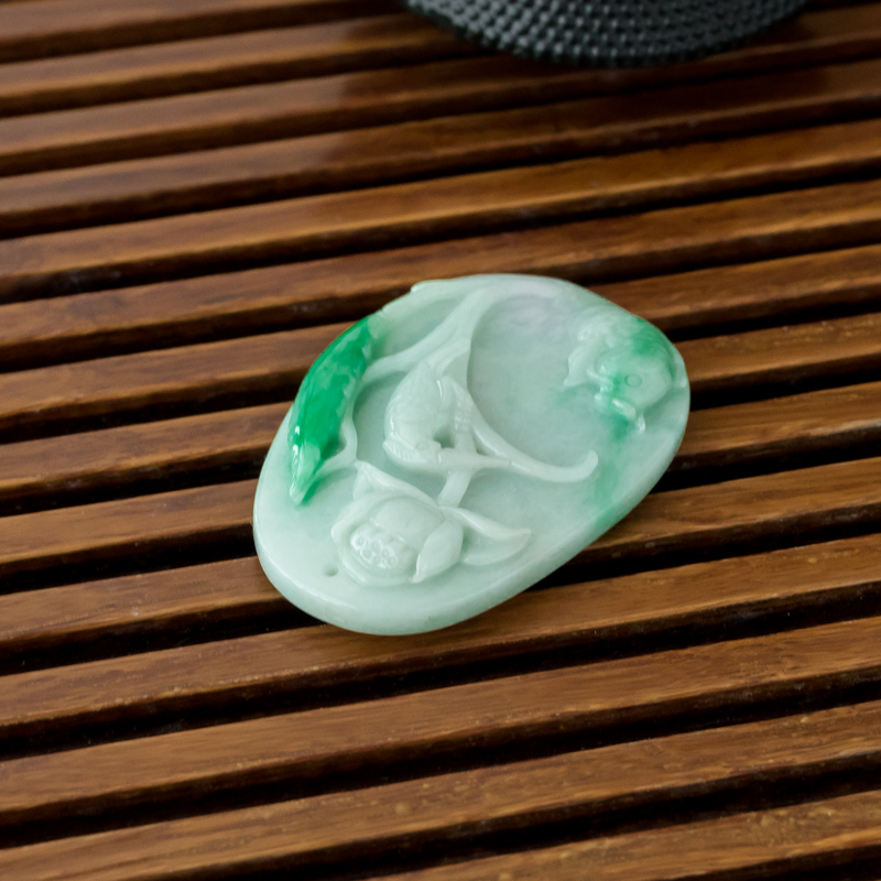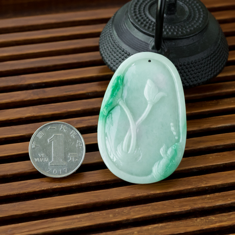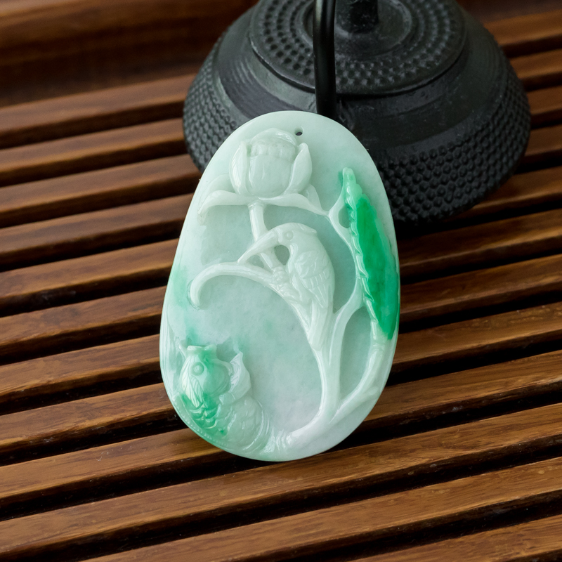 • 糯种飘翠翡翠荷塘清趣吊坠