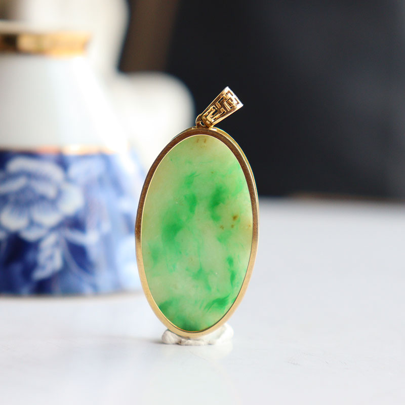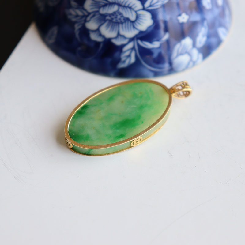 • [名  称] 18k糯种飘翠翡翠无事牌吊坠