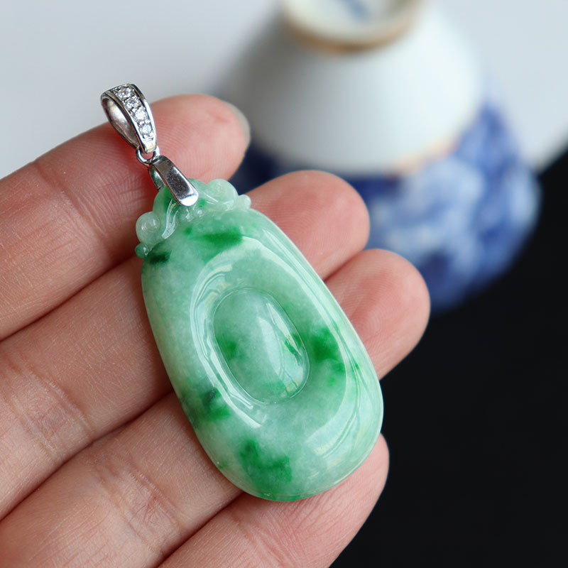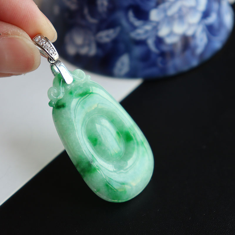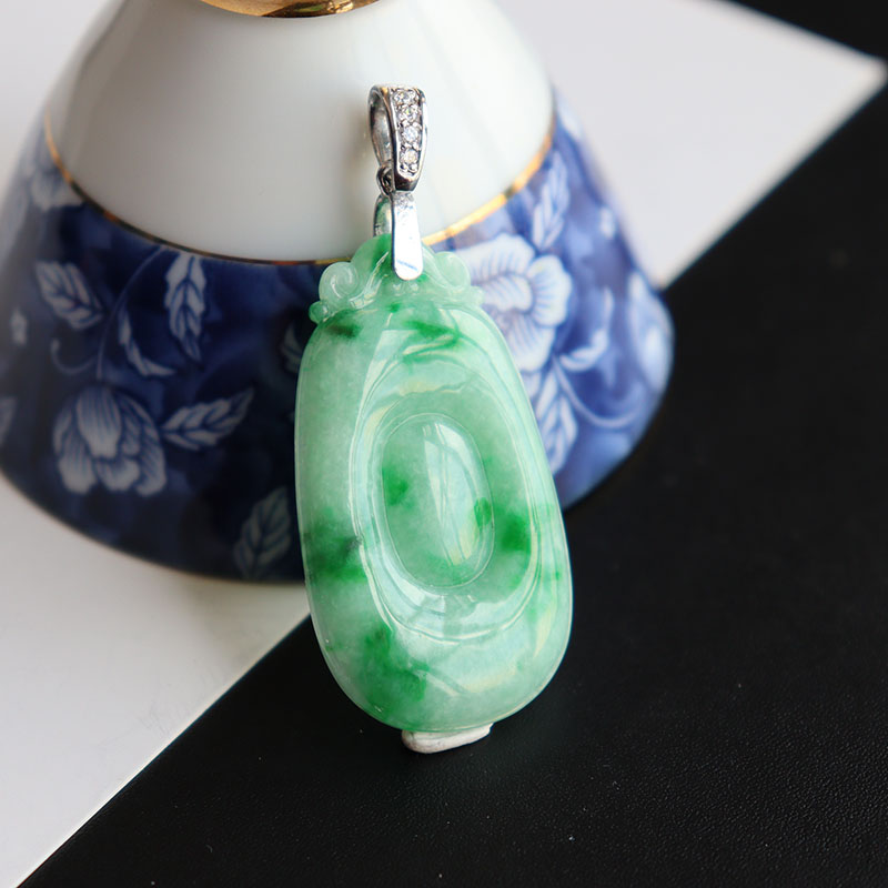 • [名  称] 银镶糯种飘翠翡翠福贝吊坠