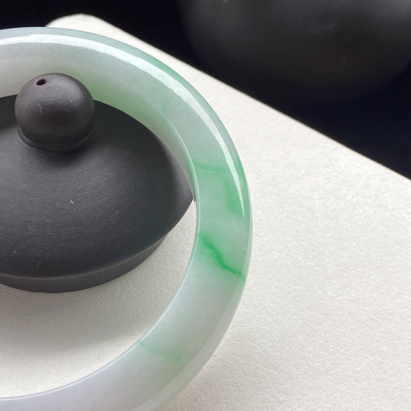 • [名  称] 56.5mm糯种翠绿翡翠平安镯