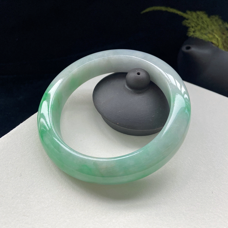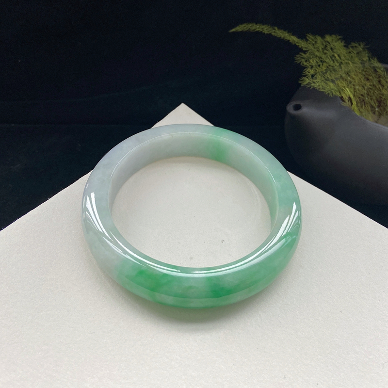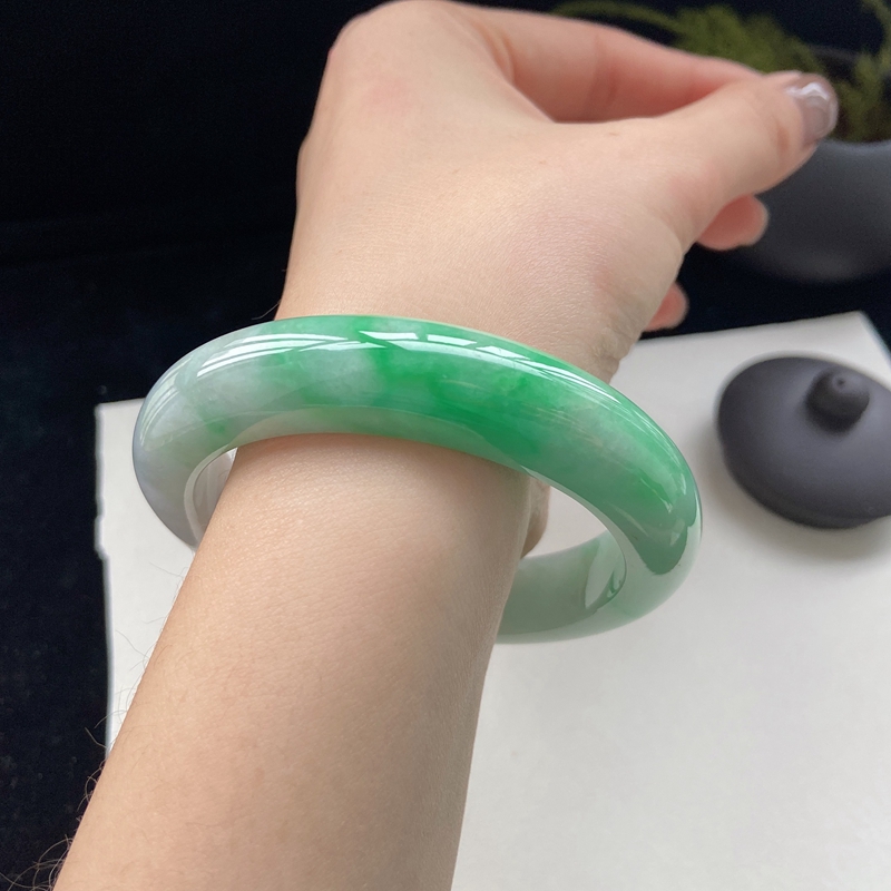 • 59mm糯种翠绿翡翠平安镯