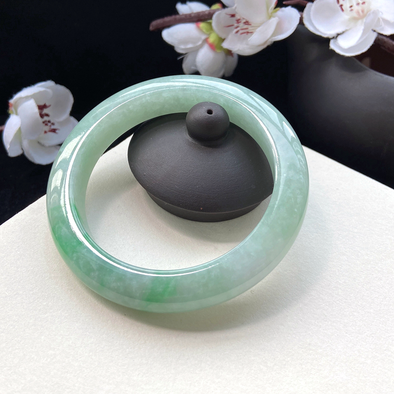 • 56.5糯种带色翡翠平安镯