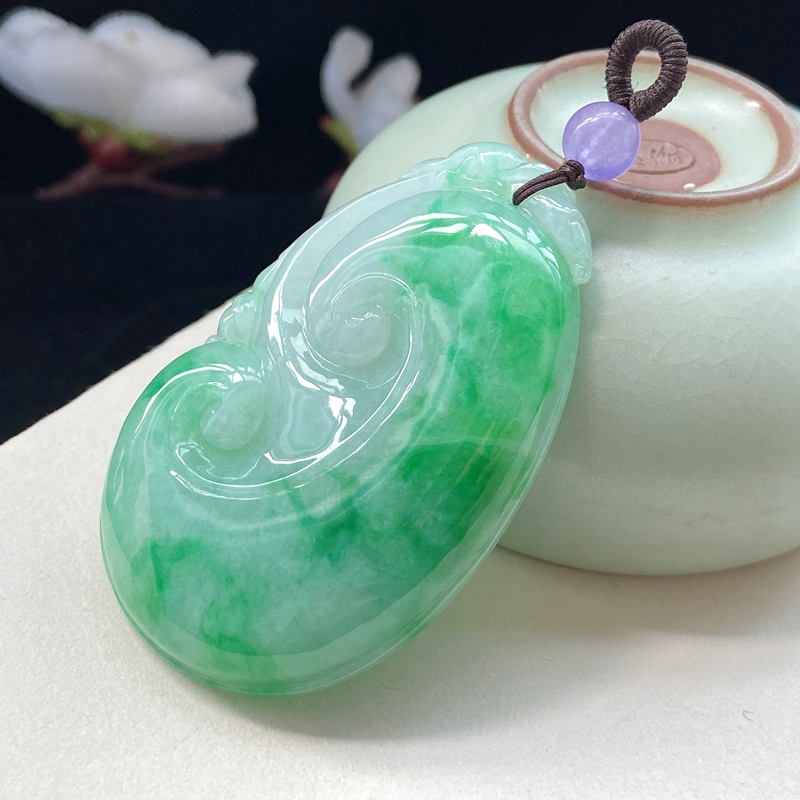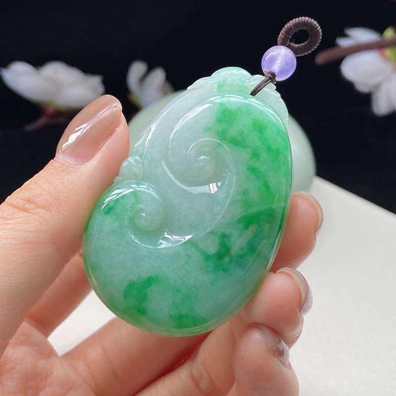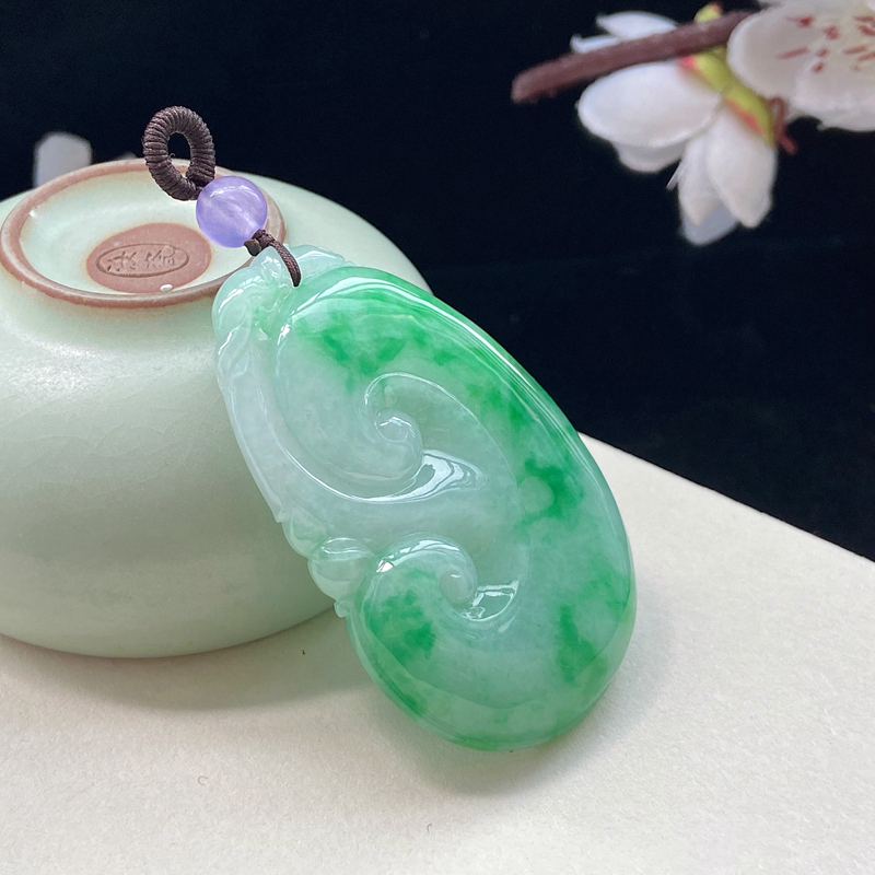 • [名  称] 糯种翠绿翡翠如意吊坠
