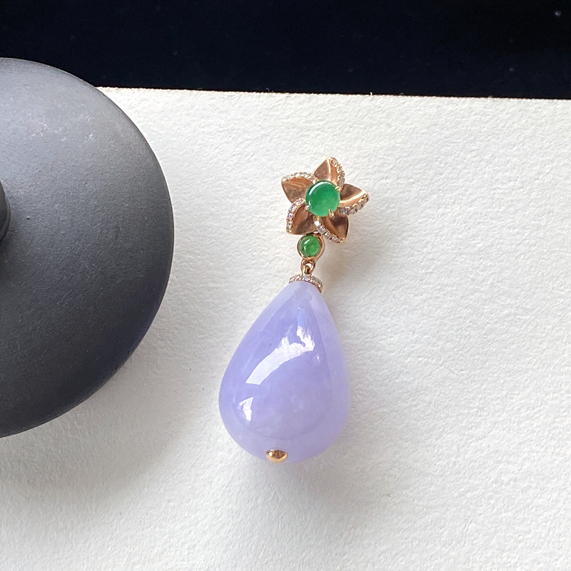 • 18K糯种紫罗兰翡翠吊坠